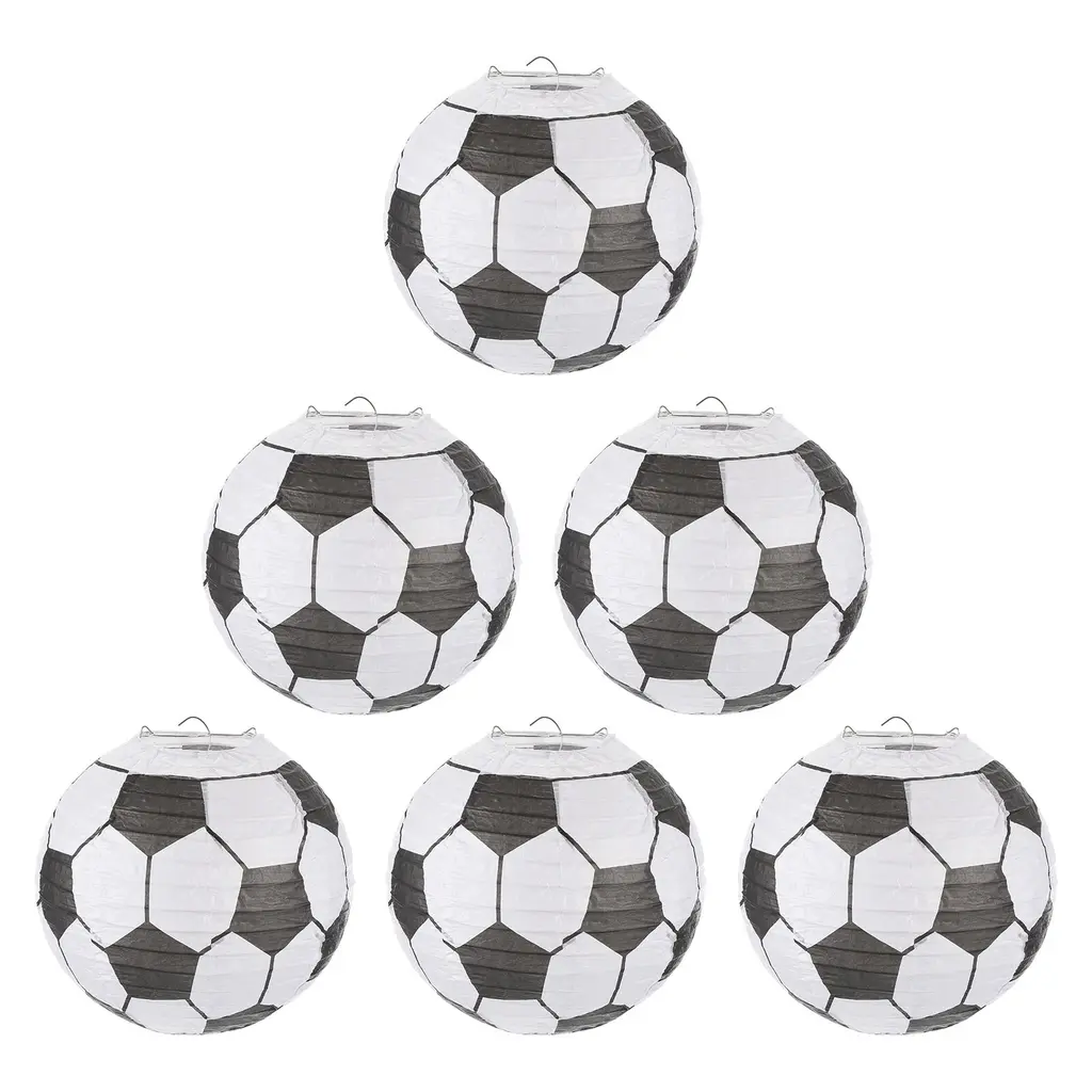 Without losing simplicity and sophistication, our paper lanterns provide a stylish and artistic decorative project. Widely used at party occasions, such as birthdays, weddings, bridal showers, theme parties, family gatherings, bachelorette parties, engagement parties, new years' parties, Christmas parties, anniversary, graduations, garden decorations, room decor, Easter basket stuffer, etc.SpecificationMaterial: Paper, MetalShape: SoccerColor: White BlackDiameter: 20cm/ 8inchPackage List: 6Pcs x Paper Lanterns, 6Pcs x InstructionsAdvantageOur paper lantern is made of quality paper, with a foldable design, can be reusable and easily stored. Easy to assemble and disassemble, comes with a sturdy hanging frame, you can hang the paper lanterns anywhere you want to decorate by using the hanging frame. Distinctive design of our paper lanterns makes decorations more stand to add party atmosphere.InstructionNot only can you paint on the paper lanterns and add your favorite elements, but you can also use them with LED lights or other lights, and hang them from the ceiling, wall, window, door, or branch to create a cheerful party atmosphere. Also, you can DIY them according to your imagination, creating unique handicrafts.NOTEPlease do not be rough when using it and avoid contacting the paper garlands with water.