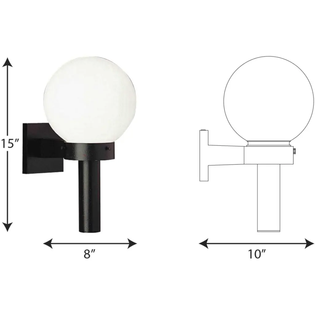 One-light 10 inch cast aluminum wall torch with a white shatter resistant globe and Black finish.