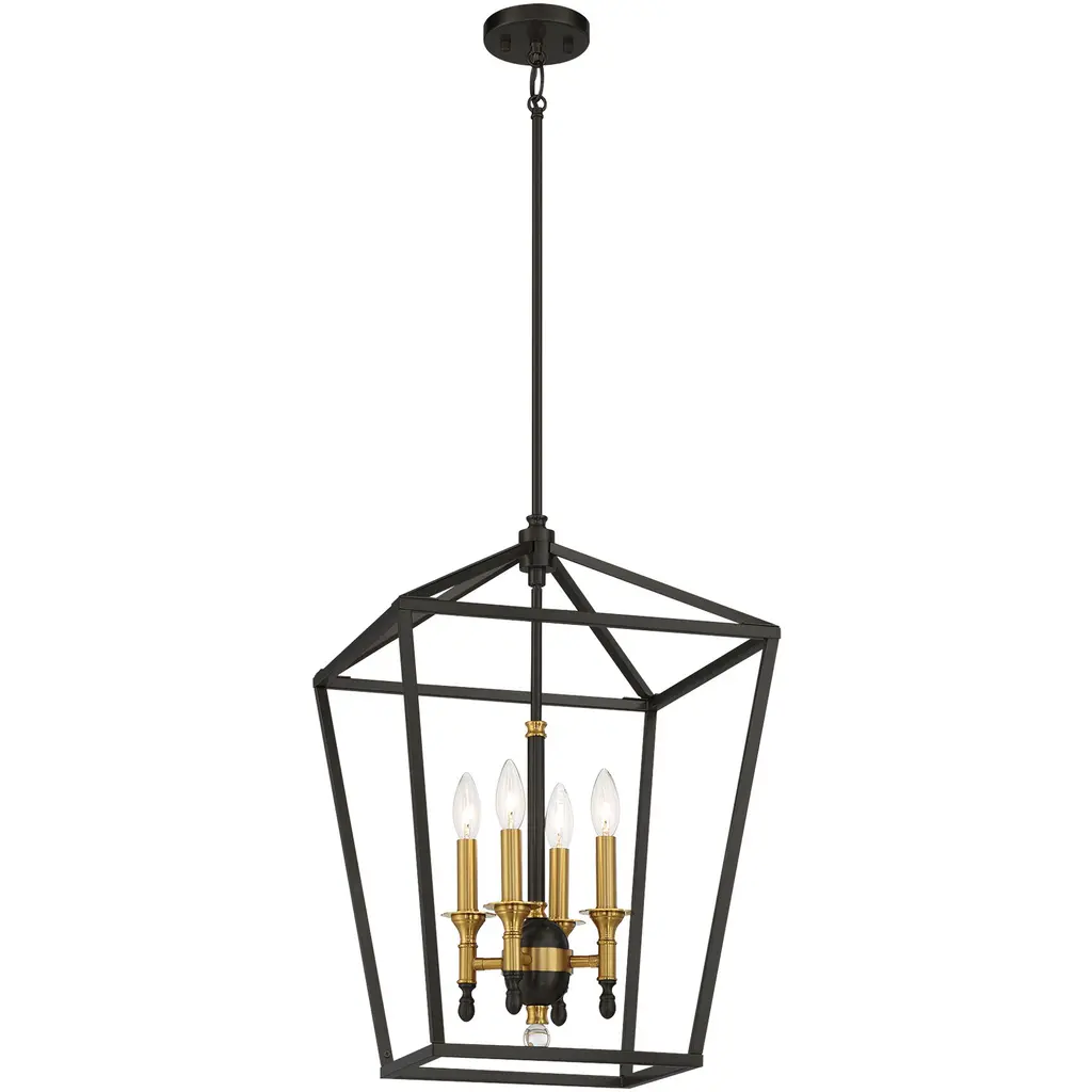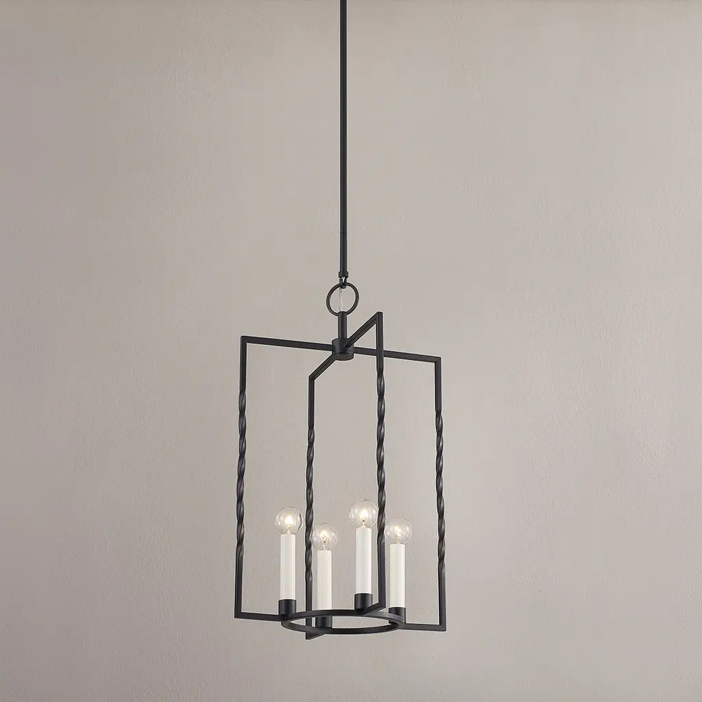 Vintage meets modern in Adelaide's romantic form. This 4-light lantern features a twisted metal frame in a textured black or vintage gold leaf finish. Circular forms near the top and bottom of the frame offset the clean edges, lending balance to the design. Candelabra style sockets reference antique design yet feel quite contemporary when paired with modern bulbs. Also available in a smaller size.