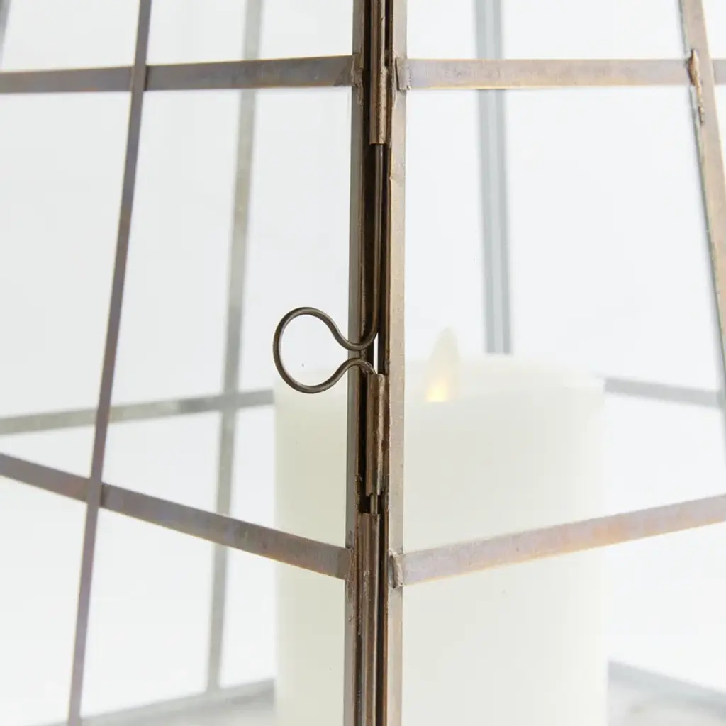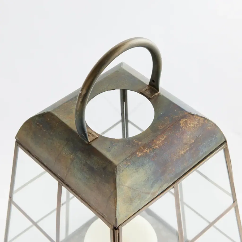 With a modern tapered silhouette, this sturdy design is scaled to impress. With upright handles and a warm antique brass finish, it is perfect for alongside mantel or in entry foyer.