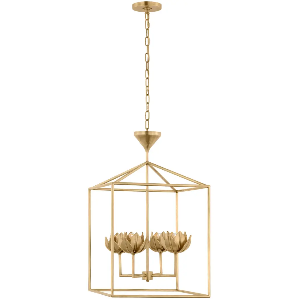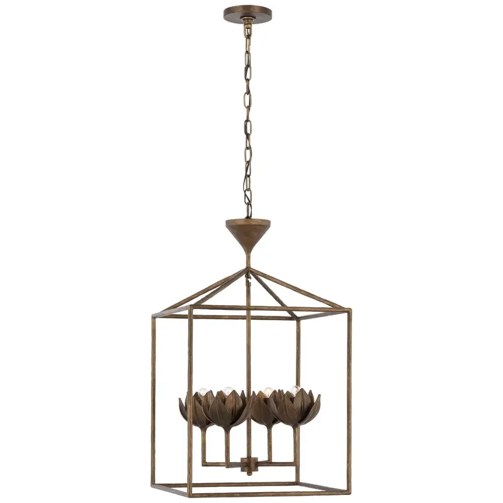 Introducing the Alberto Small Open Cage Lantern from the Julie Neill For Visual Comfort Signature Collection. Inspired by artist Diego Giacometti, this lantern showcases elegant floral forms and an open cage design. Perfect for adding a touch of artistic sophistication to any space.