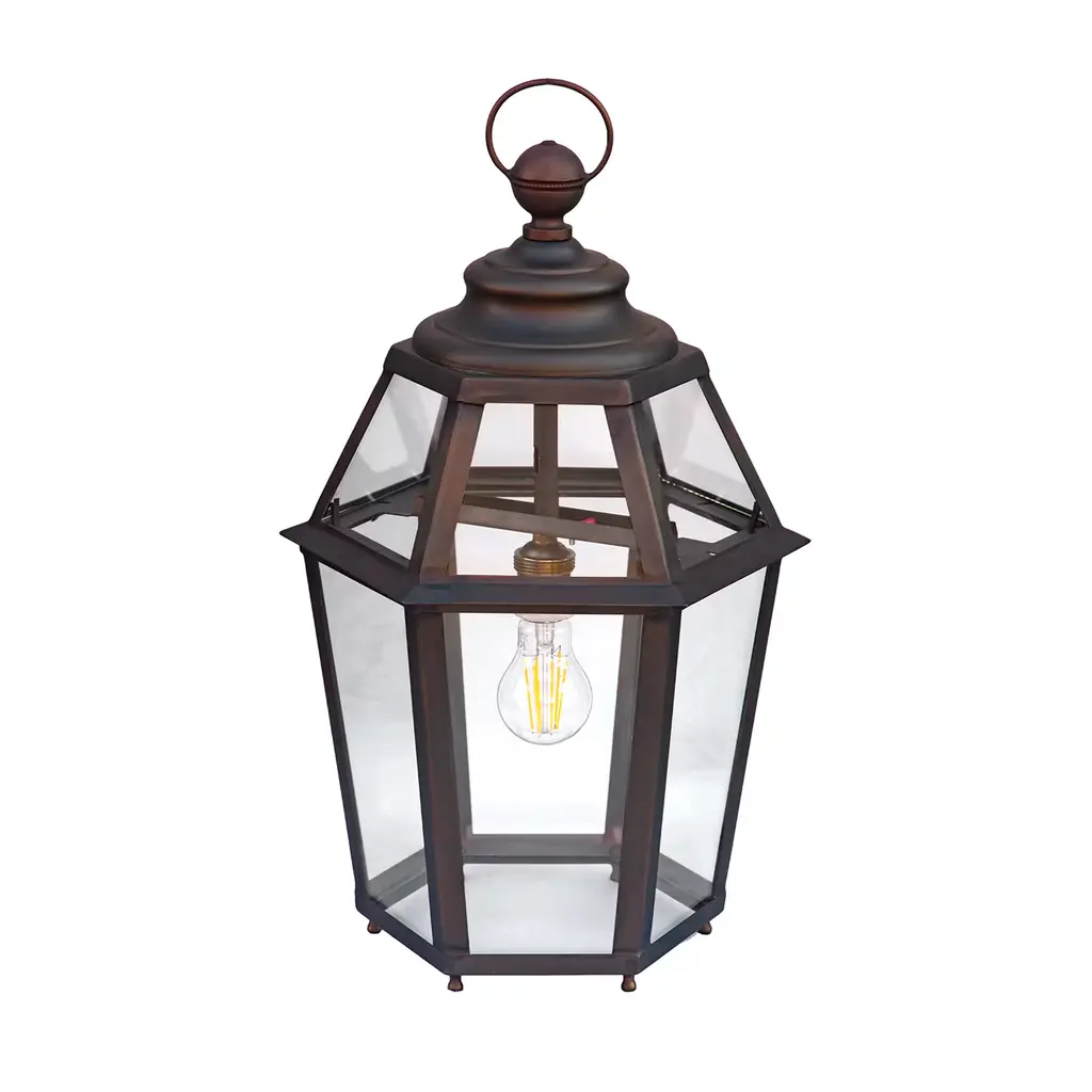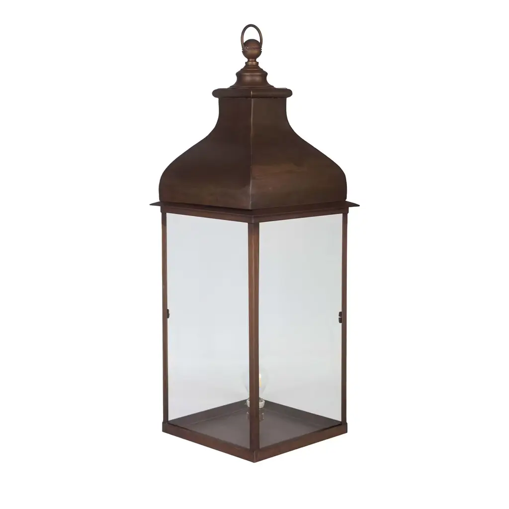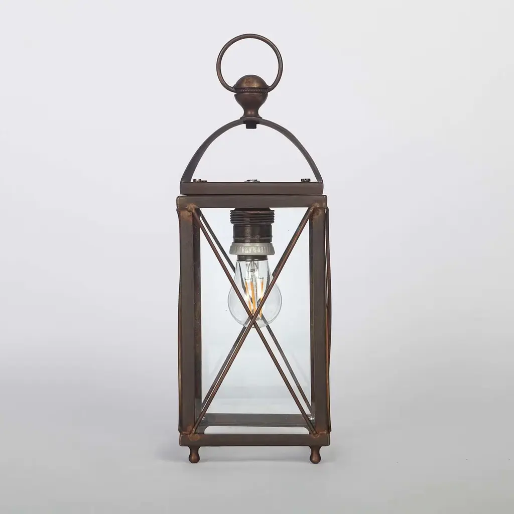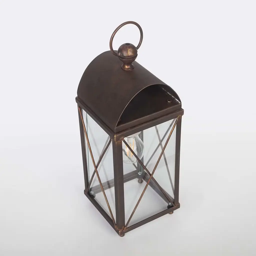 Alessia is a lantern with an elegant and romantic flavor. It's made in burnished brass and glass which recall the ancient style of candle lighting. The uniqueness of Alessia's design makes it a real architectural gem as well as a decorative light source. The lantern is shipped with the suspended ceiling support but is also available with the wall attachment or the floor base. Please ask our Concierge for more details.