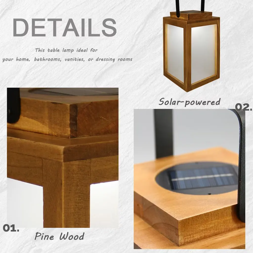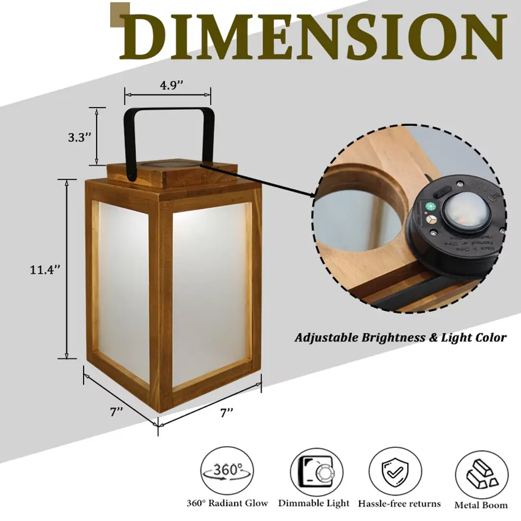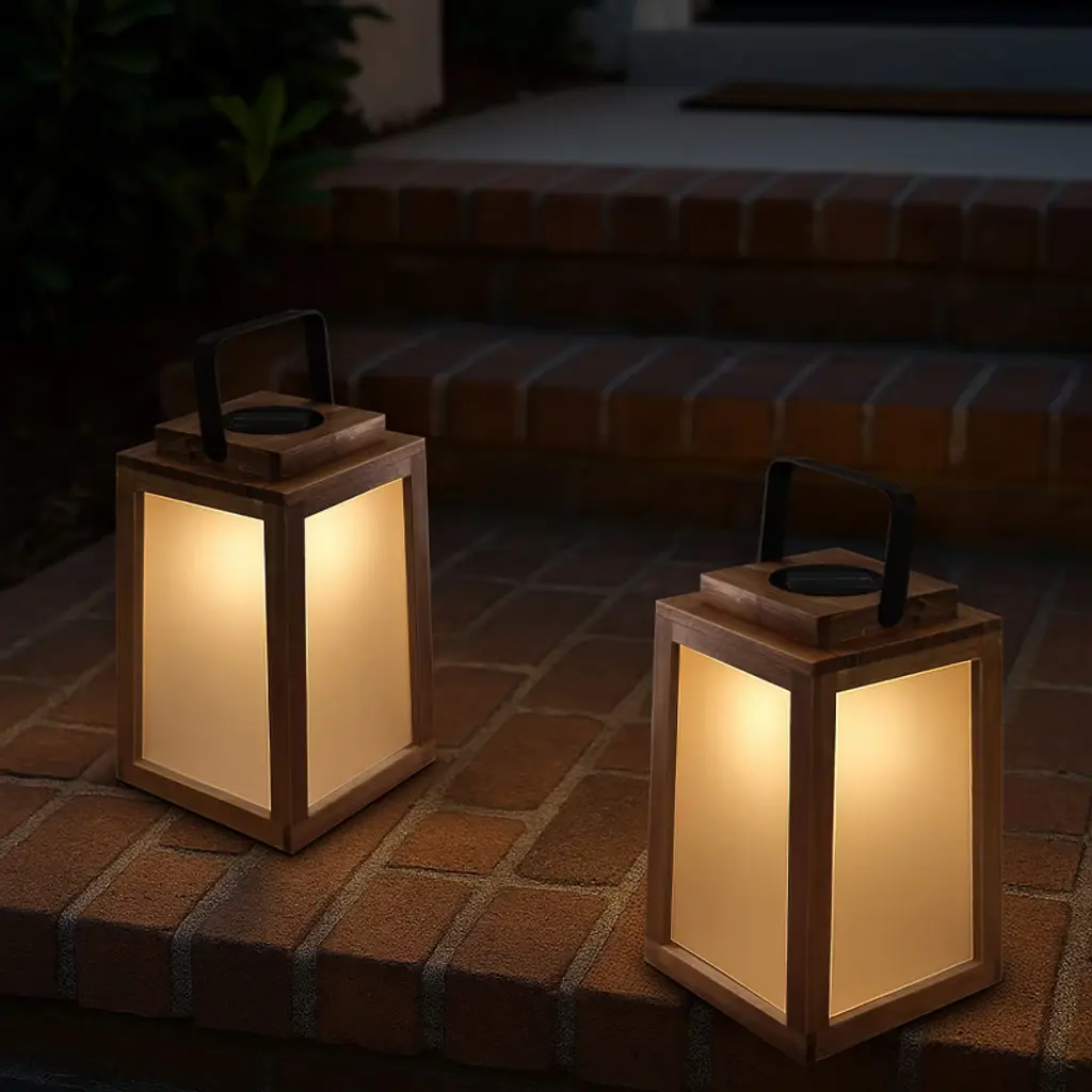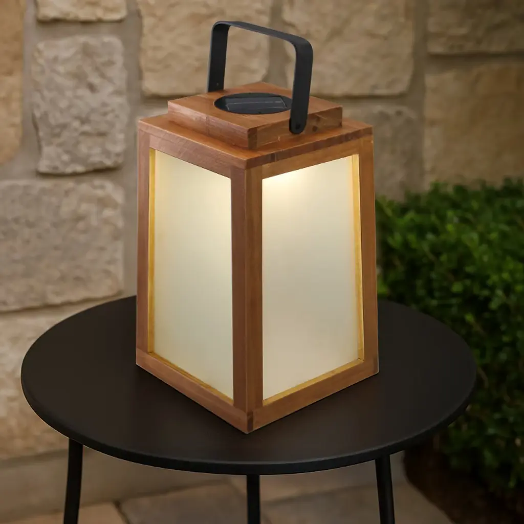 Transform your evenings with the AloaDecor Solar-Powered Wooden Lantern—a perfect blend of rustic charm and modern functionality. Whether you're hosting a cozy backyard dinner, relaxing on the patio, or heading out on a weekend camping trip, this versatile lantern adds both warm ambiance and practical lighting to any setting. Crafted with a durable pine wood frame and frosted glass panels, it brings a soft, organic glow that complements farmhouse, rustic, and contemporary spaces alike. Designed for outdoor use, it’s IP44 waterproof, lightweight, and easy to carry with its built-in handle. Hang it from a tree, place it on a table, or pack it for your next adventure. The high-efficiency solar panel fully charges in 6–8 hours and offers up to 12 hours of illumination at night. Measuring 7” x 7” x 11”, this lantern is compact yet striking—beautiful, functional, and eco-friendly. It’s the perfect lighting companion for any indoor or outdoor occasion.