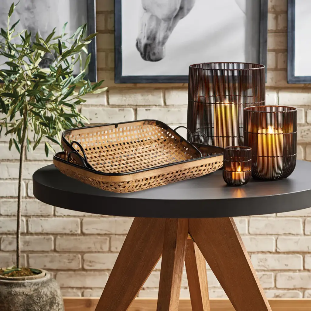 With an intricate mesh pattern, the Amhurst gently diffuses the candlelight. The interior is a golden brass, enhancing the warm glow. Simply stunning.
