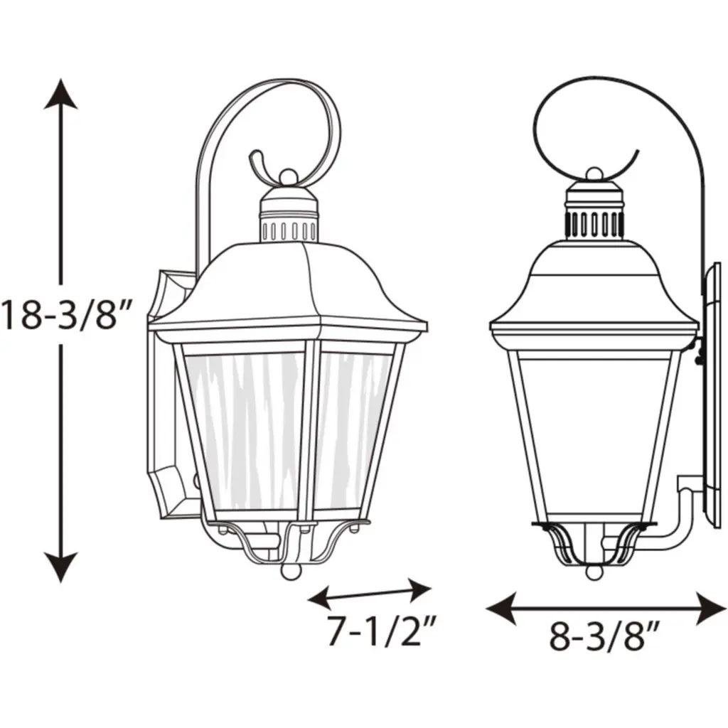This wall lantern offers a mix of traditional and country styles that will complement a variety of settings. The etched pillar of glass diffuser inside the clear water seeded glass shade gives off a soft glow of light. The lantern's frame is coated in a classic black finish.