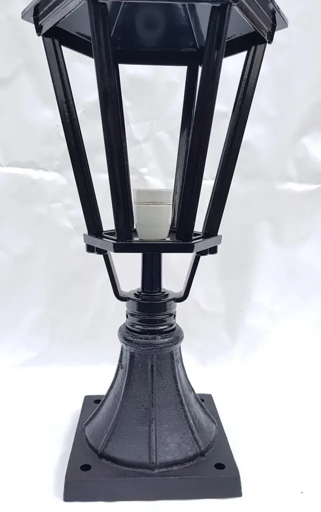Antique Classic Victorian Cast Iron Pillar Lamp Lantern On Base Outdoor Lamp