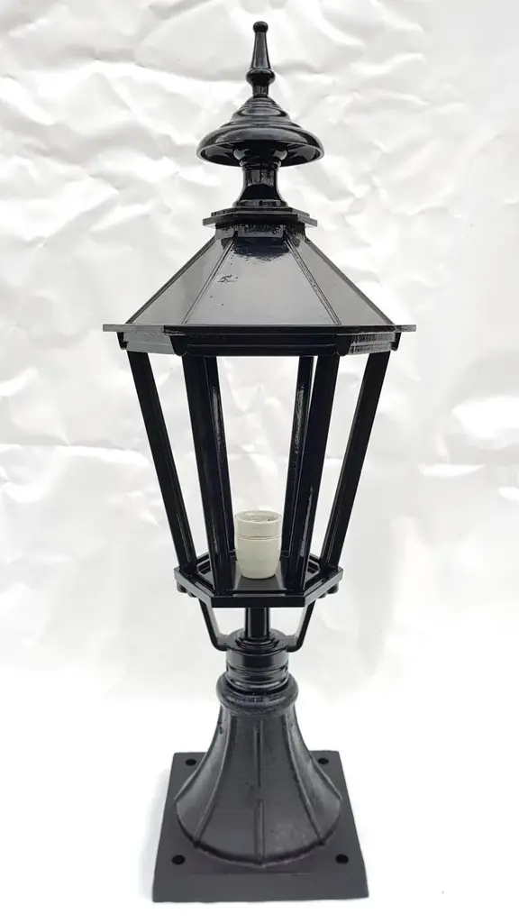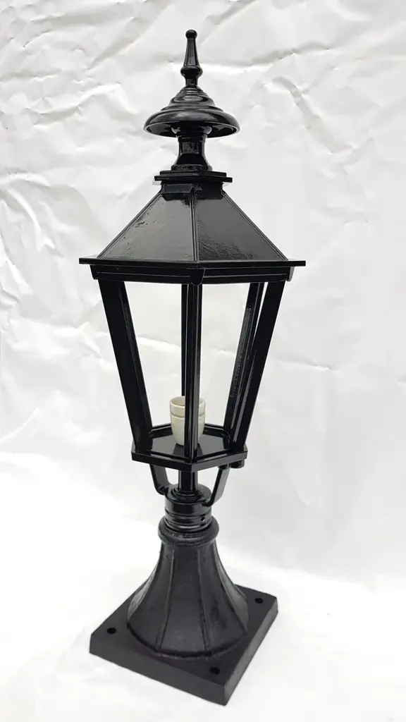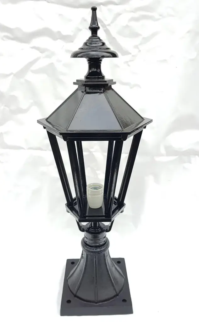 Antique Classic Victorian Cast Iron Pillar Lamp Lantern on Base Outdoor Lamp, in Flawless conditions. Designed from 2000 Up to 250V (Europe/UK Standard).The wiring of this item may be original and might need replacement, if not specified otherwise.