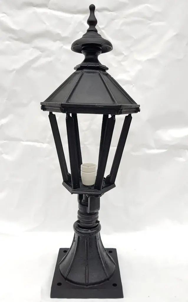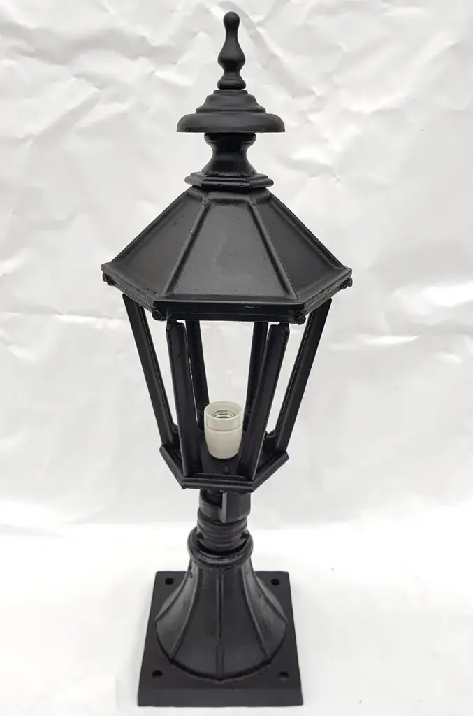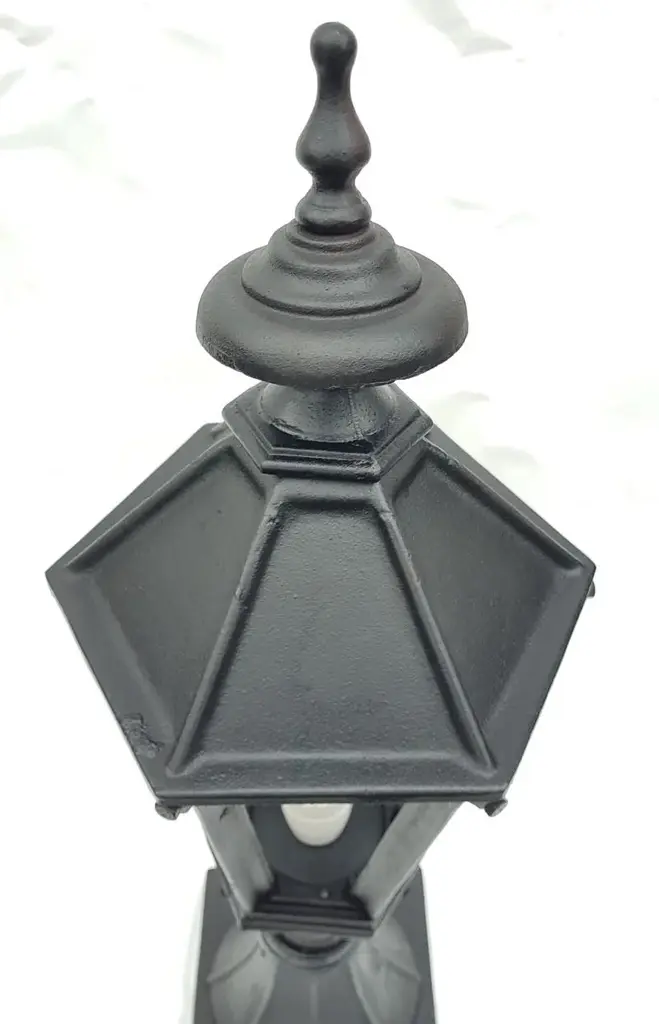 Antique Classic Victorian Cast Iron Pillar Lamp Lantern on Base Outdoor Lamp, in Flawless conditions. Designed from 2000 Up to 250V (Europe/UK Standard).The wiring of this item may be original and might need replacement, if not specified otherwise.