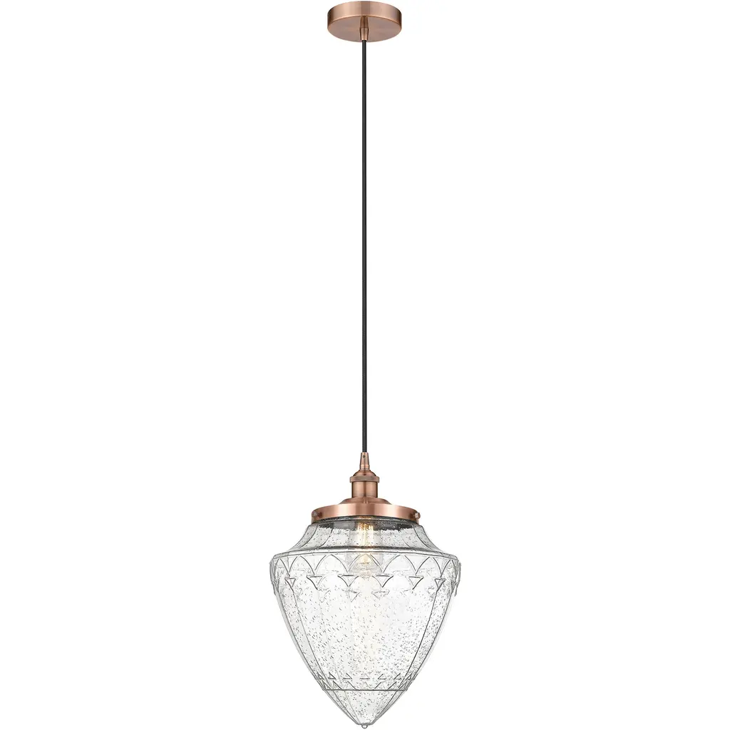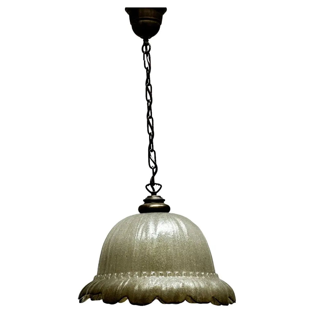 Three different color bell jar lanterns with brass details. Stunning pigment like cobalt can be dated back as far as 1802, making these ceiling fixtures even more extrordinary. Measurements: Height: 36"Diameter: 12.5"