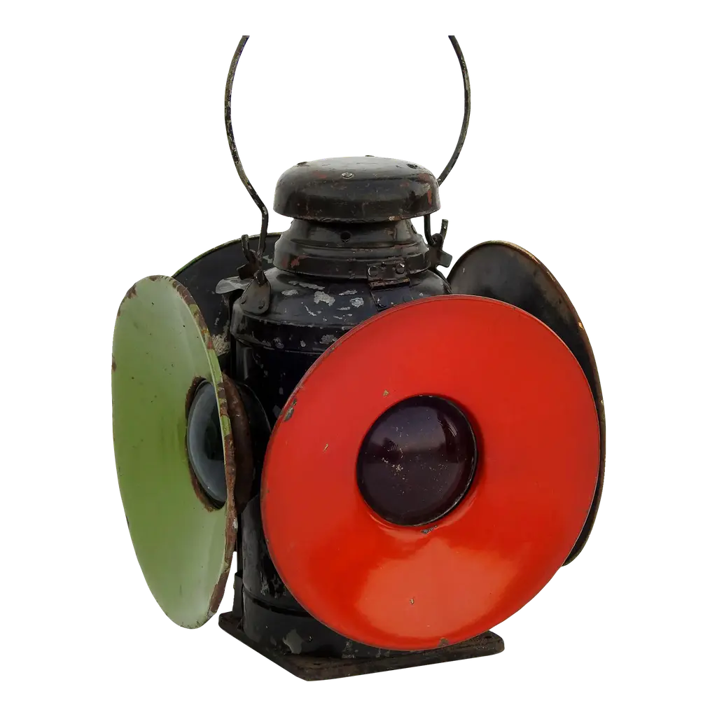 Antique Lantern Signaling Lamp, White-Red-Green, Italy Railway, Still Working