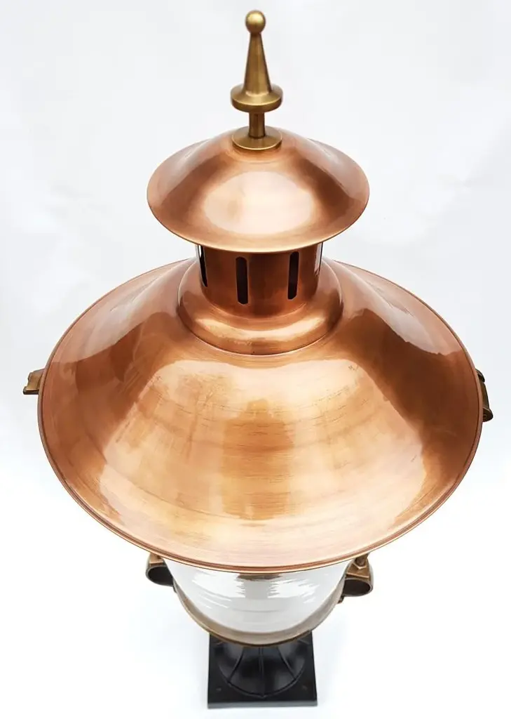 Antique Victorian Classic Copper Pillar Lamp Lantern On Base Outdoor Lamp