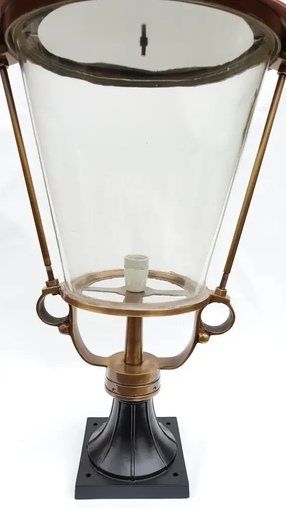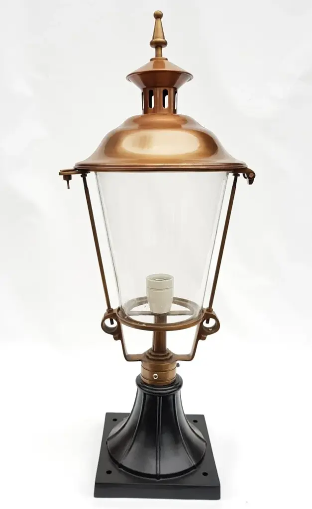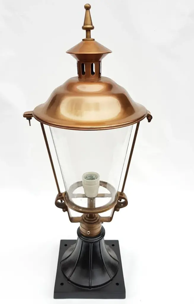 Antique Victorian Classic Copper Pillar Lamp Lantern On Base Outdoor Lamp