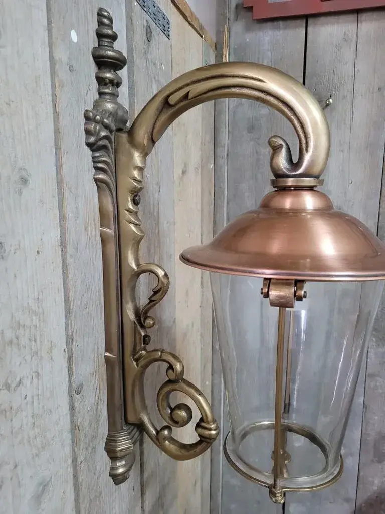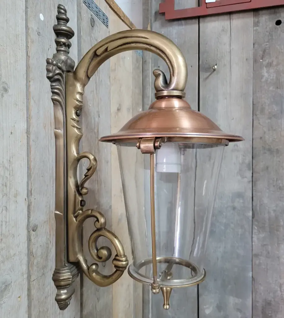 Art Nouveau Brass Copper Wall Lantern Outdoor Lamp