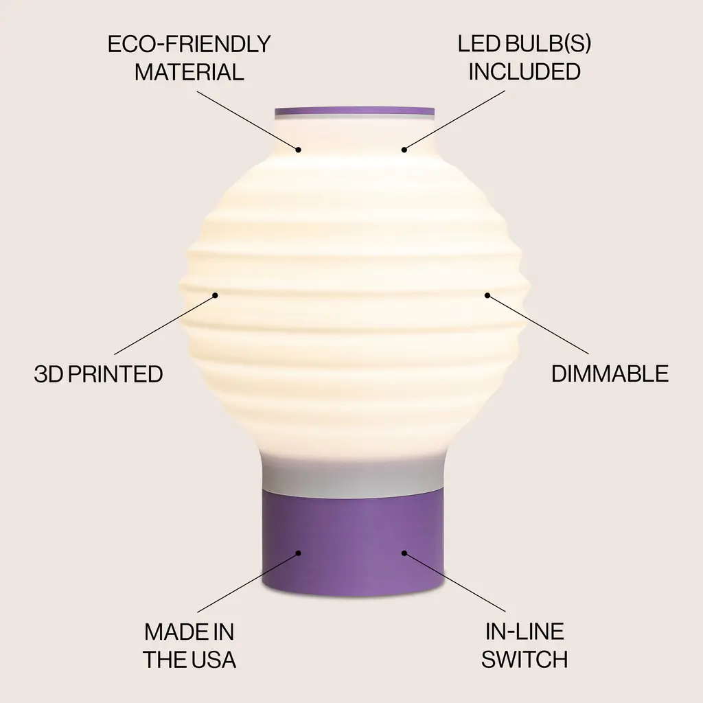 Asian Lantern 15" Vintage Traditional Plant-Based Pla 3D Printed Dimmable Led Table Lamp, By Jonathan Y - White/purple