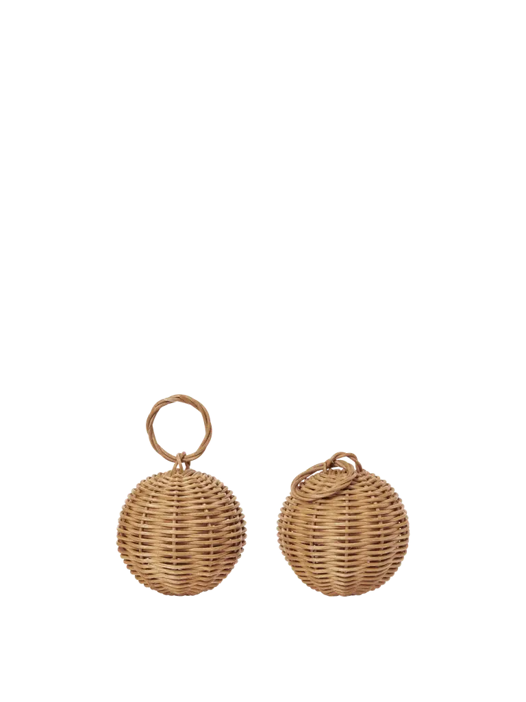 Bali Set Of 2 Woven Cane Lanterns With Metal Frame/handle Cane/iron