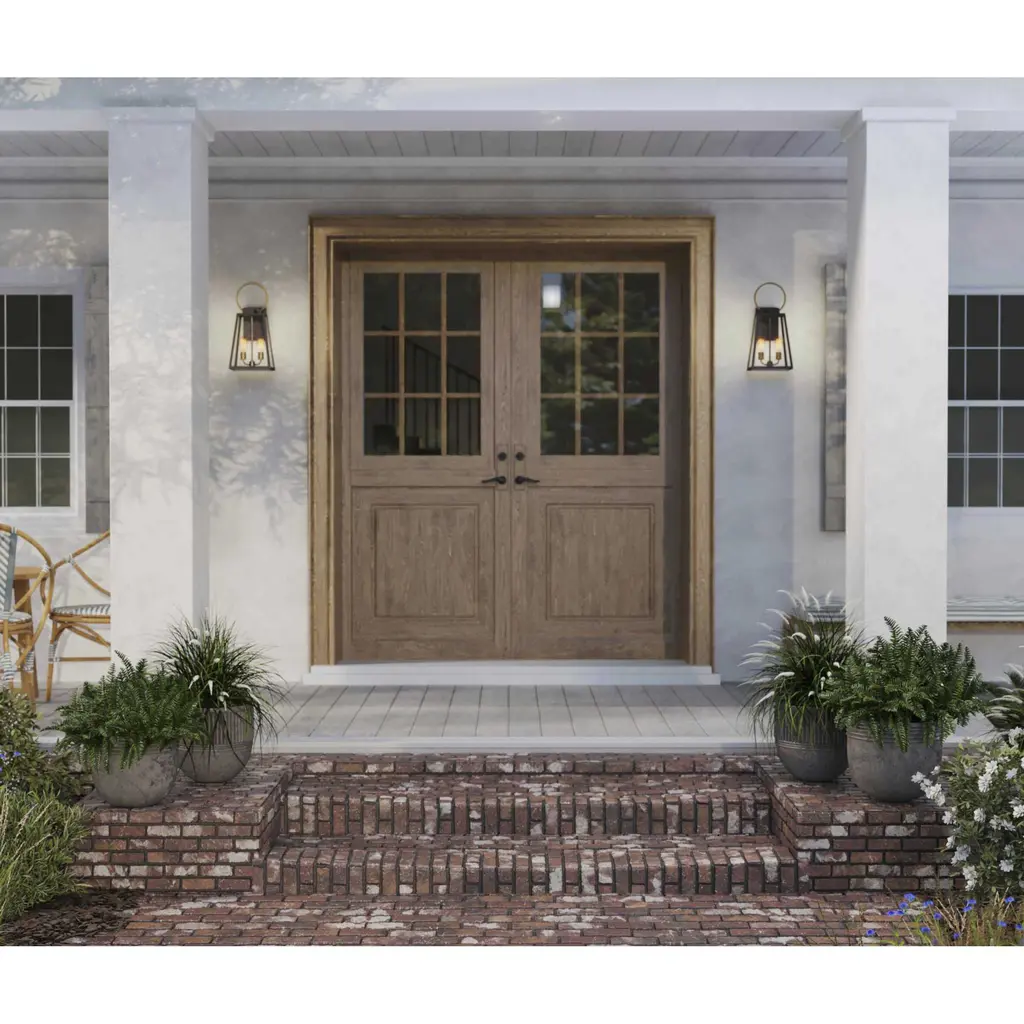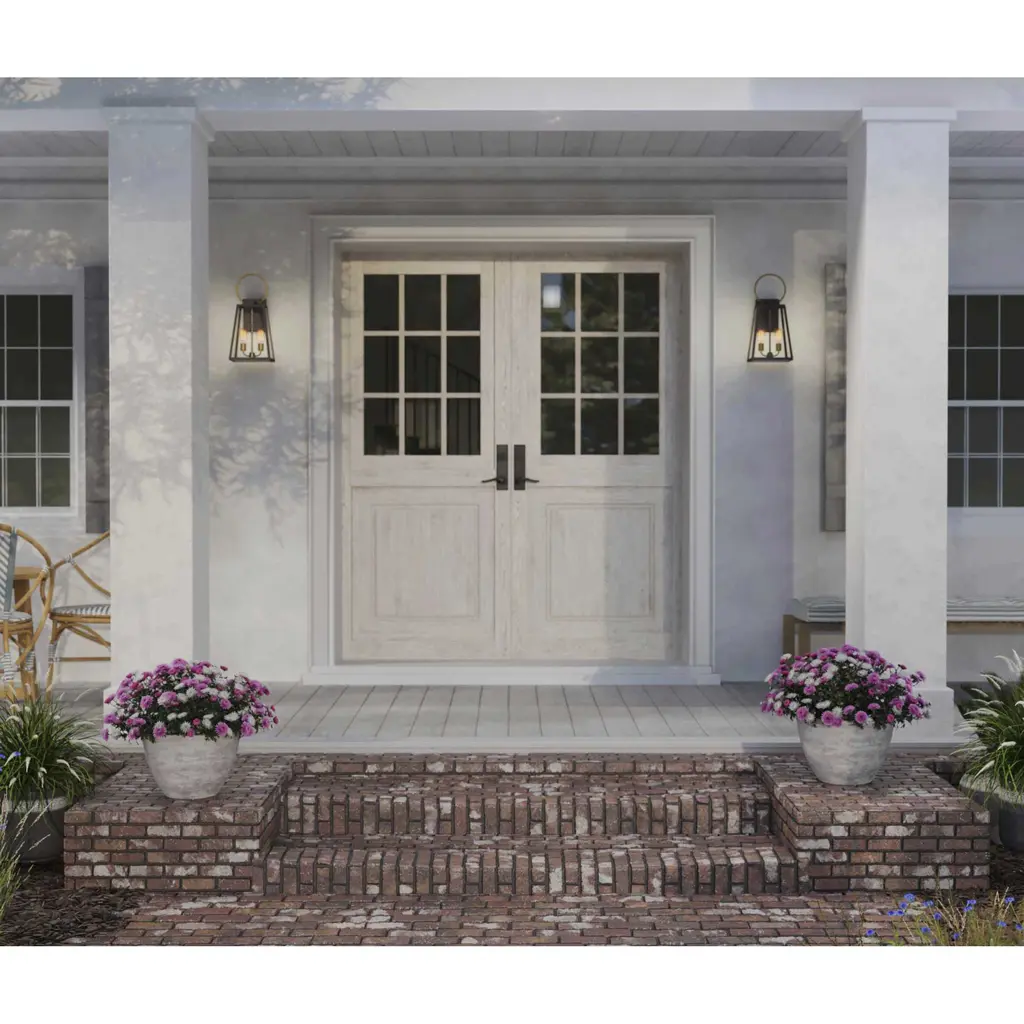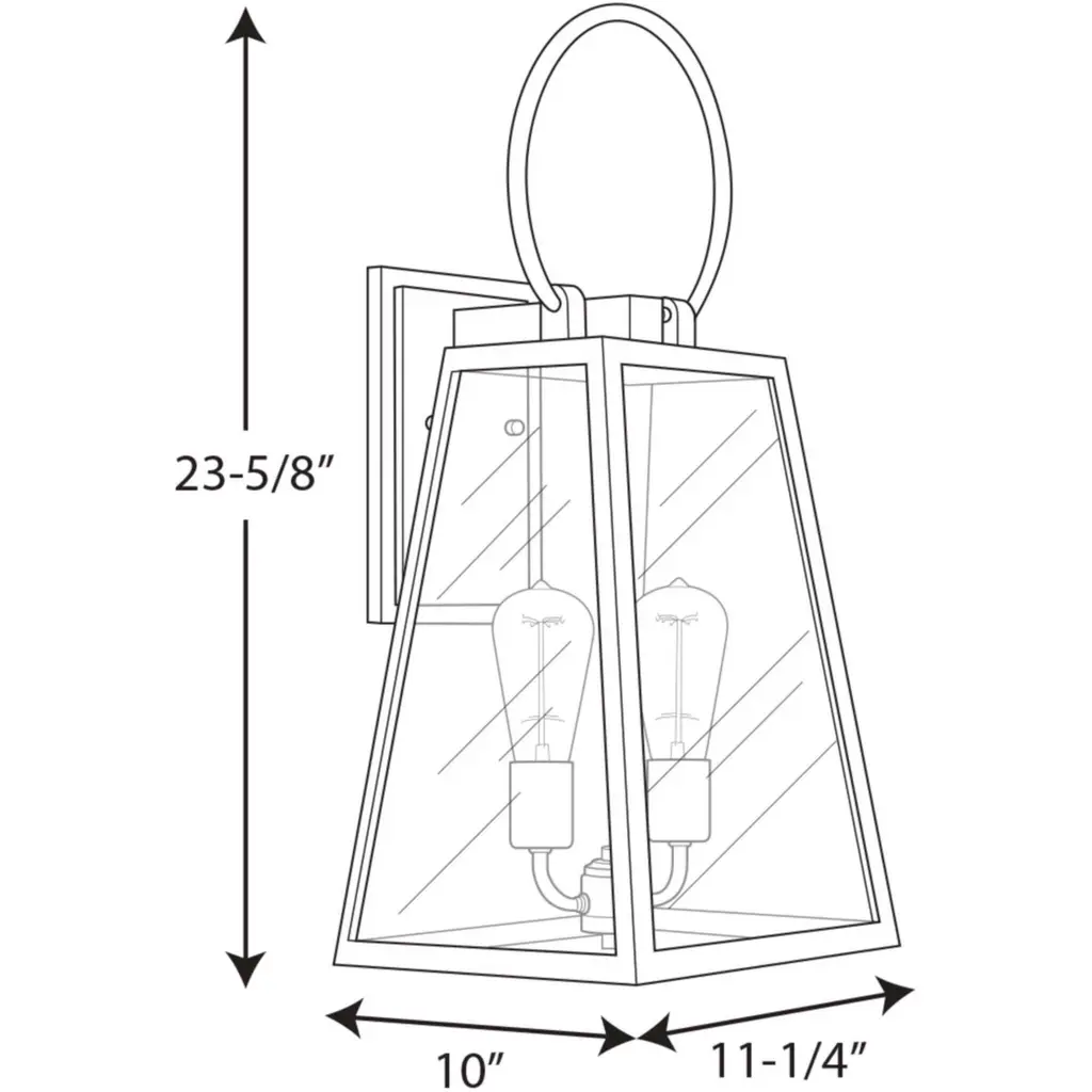 Barnett lanterns deliver timeless appeal with a decidedly modern flair. Large clear panes of glass frame your choice of traditional or vintage style bulbs. A graphic-inspired overscaled loop features a contrasting brass-tone finish. Two-Light Large Wall Lantern.