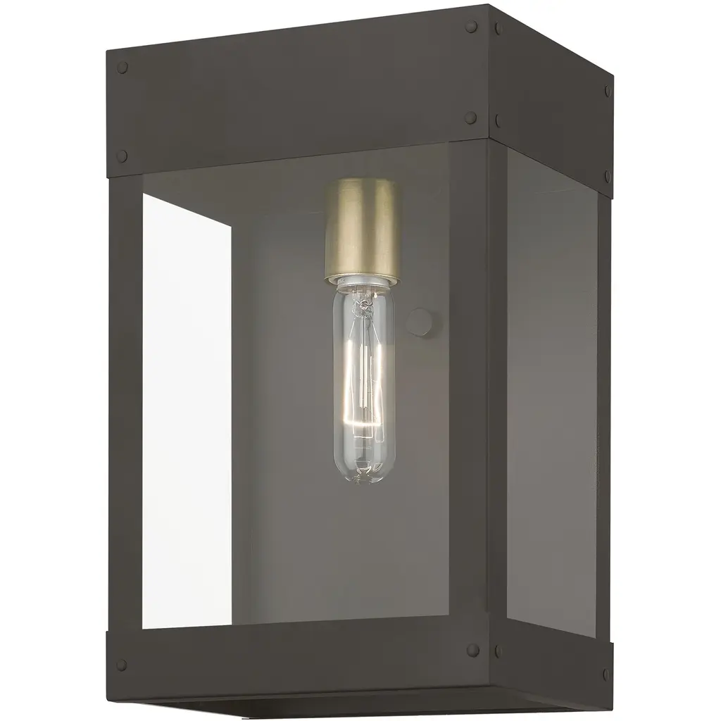 1 Light Bronze with Antique Brass Candle Outdoor Wall Lantern