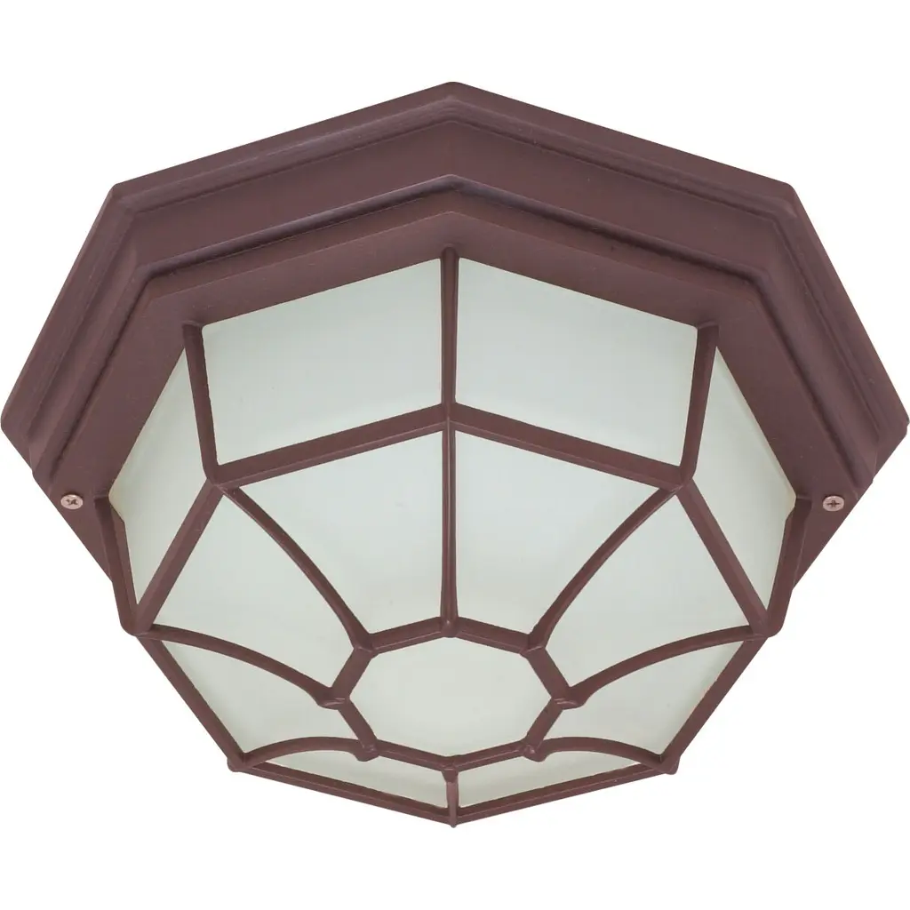 The Benkert Collection is a low-profile style designed to cast a soft ambient light over a wide area. The distinct shape blends with any decor , while also illuminating a variety of outdoor living areas. The prominent web-like metal housing is an octagonal shape. The Benkert 5" Flushmount Lantern accepts a single light, has frosted glass panels and is offered in multiple finish choices.