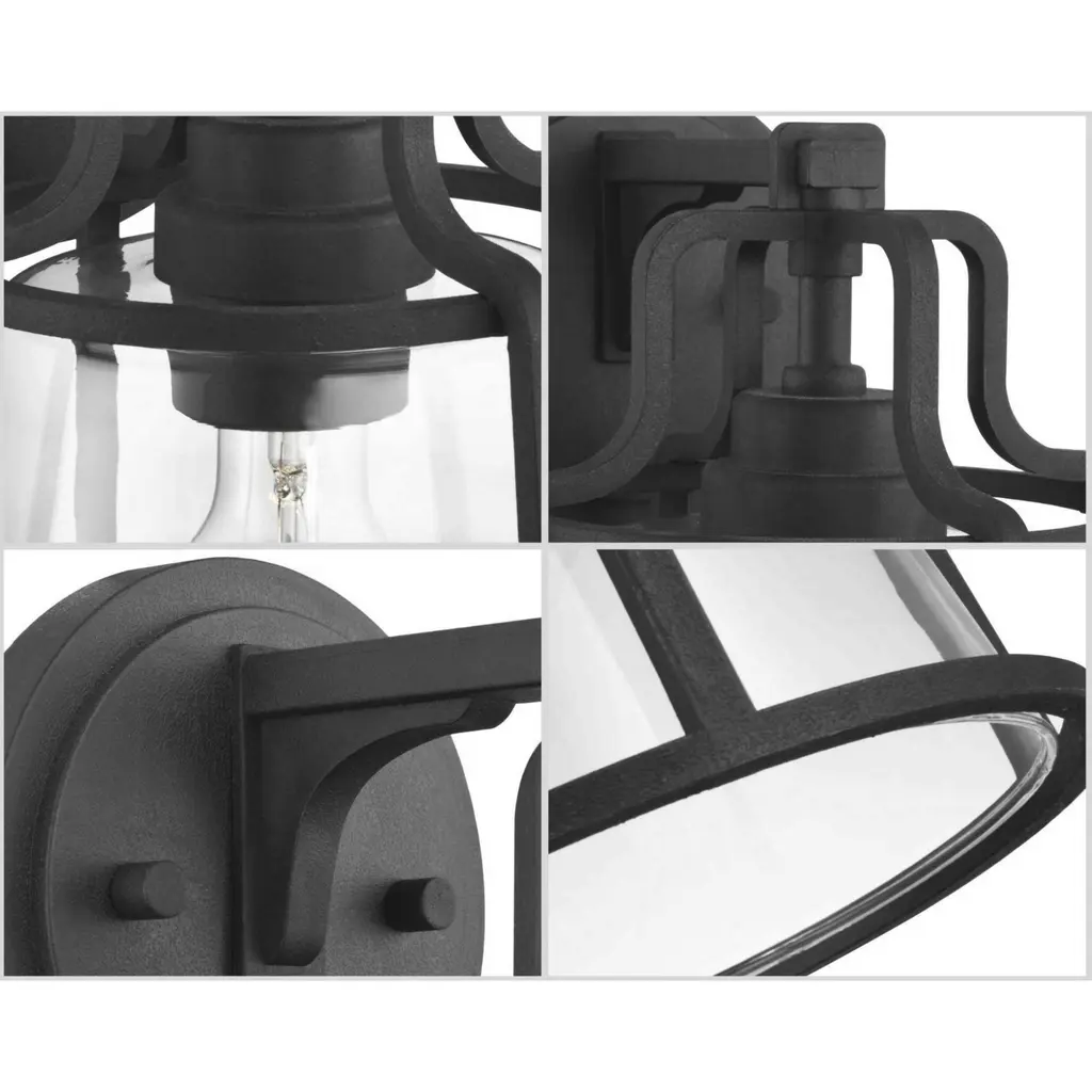 This wall lantern is expertly crafted with that casual, coastal style you love. A clear glass shade shields a simple light base for a seaside-living vibe. The shade is cradled inside an open-cage black frame featuring thin bars and constructed with a composite polymer, corrosion-resistant housing. DURASHIELD by Progress Lighting is built to last. Constructed from a composite material with UV protection, DURASHIELD holds up even in the harshest weather conditions. This high-performance finish has a 5-year warranty and is resistant to rust, corrosion, and fading.