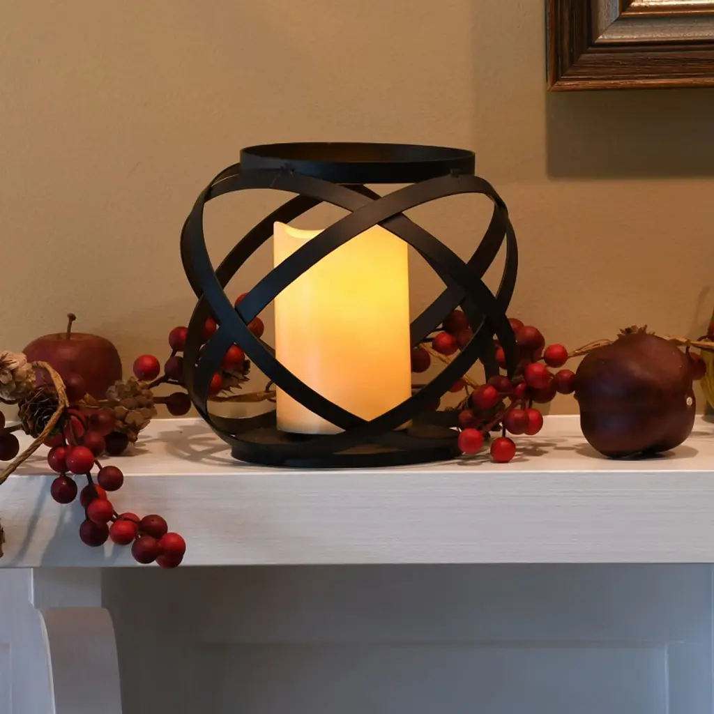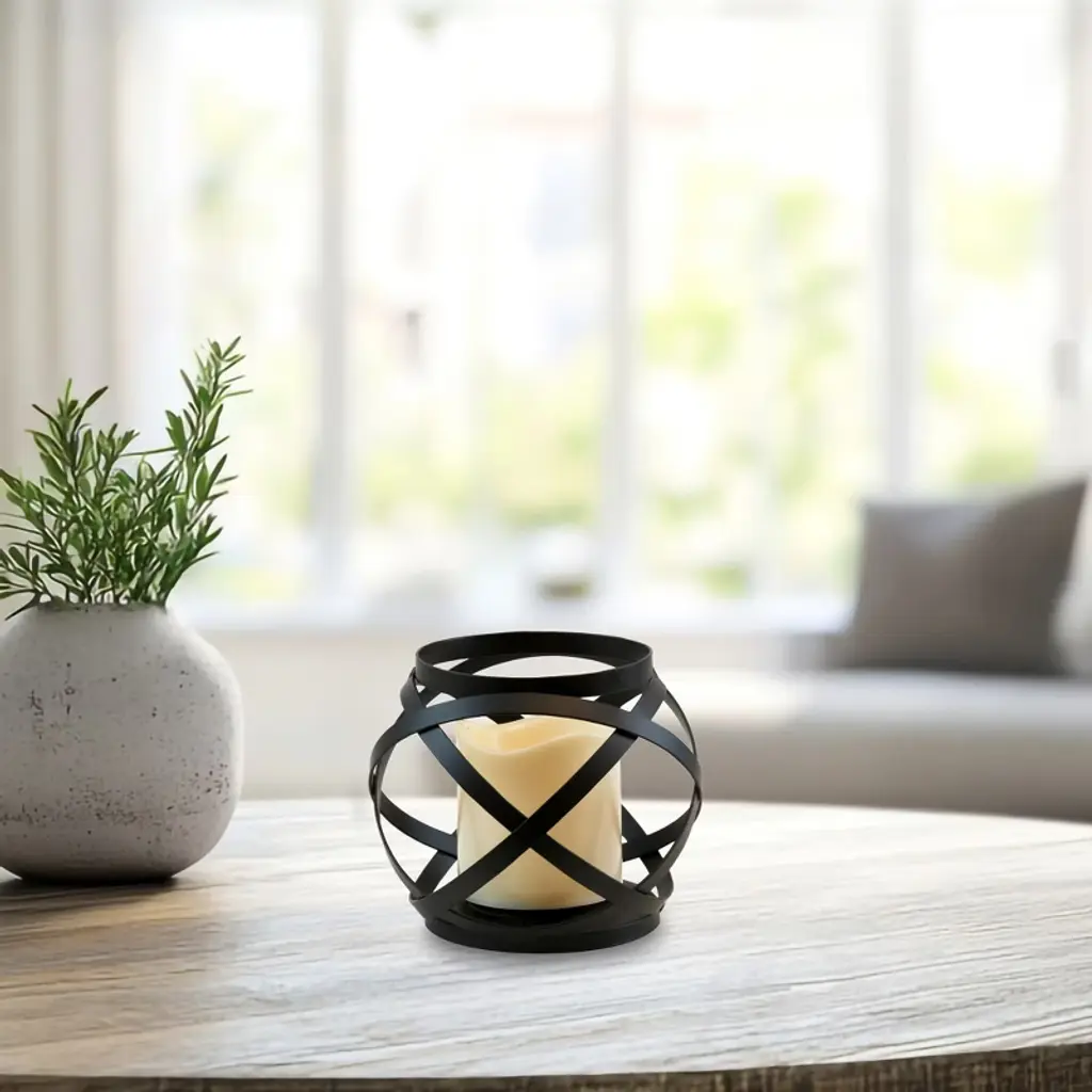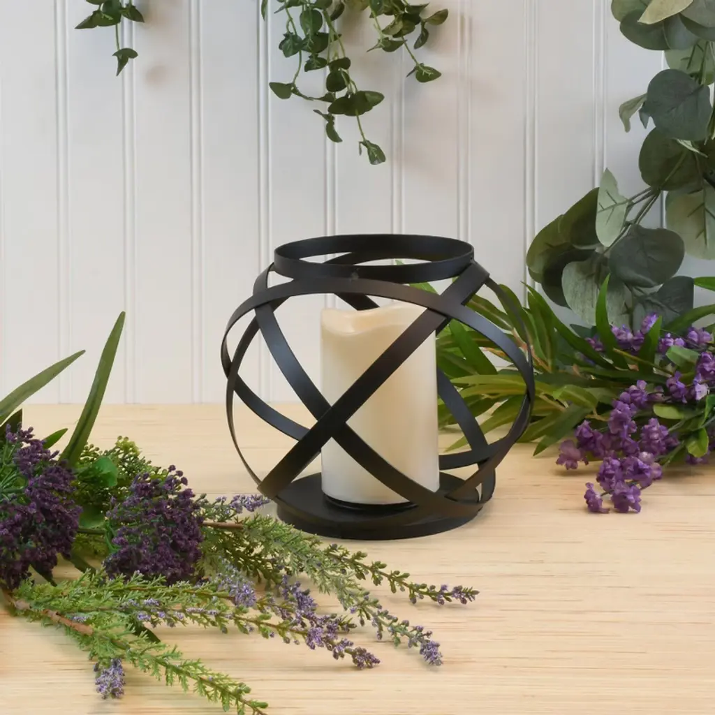 This stylish metal lantern that features an intertwined banded design with an LED candle is a versatile piece perfect for everyday home décor. Chic flameless lanterns are perfect for adding accent lighting to your special event, dinner party, or everyday home décor. The candle has a convenient timer incorporated for 5 hours on and 19 hours off. Candle requires 3 AAA batteries (not included).