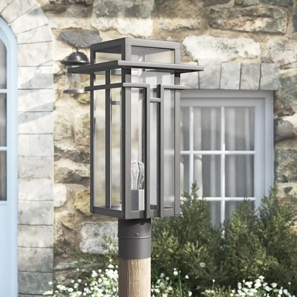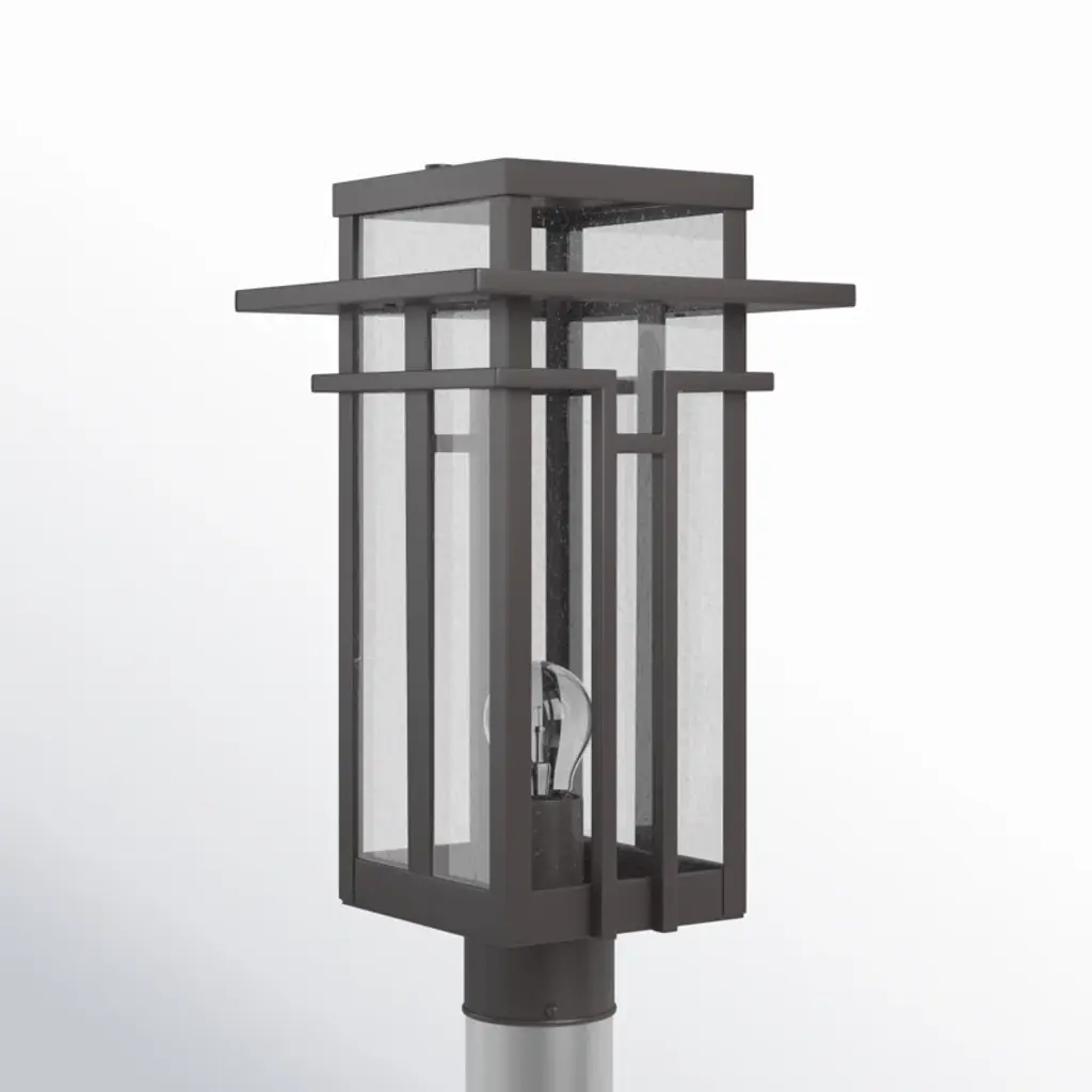 Geometric details in Boxwood’s design enhance Craftsman-inspired architecture. The one-light post lantern features clear seeded glass and finished in Architectural Bronze which completes the authentic style.