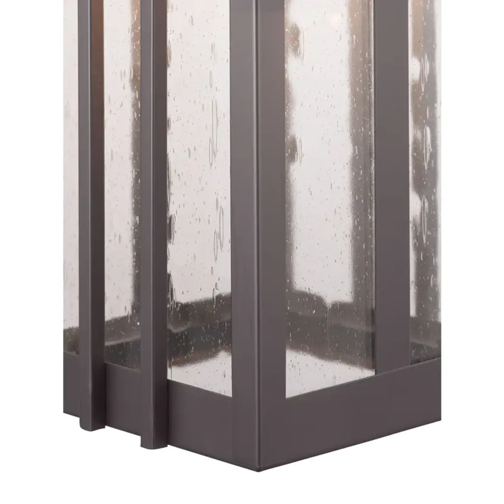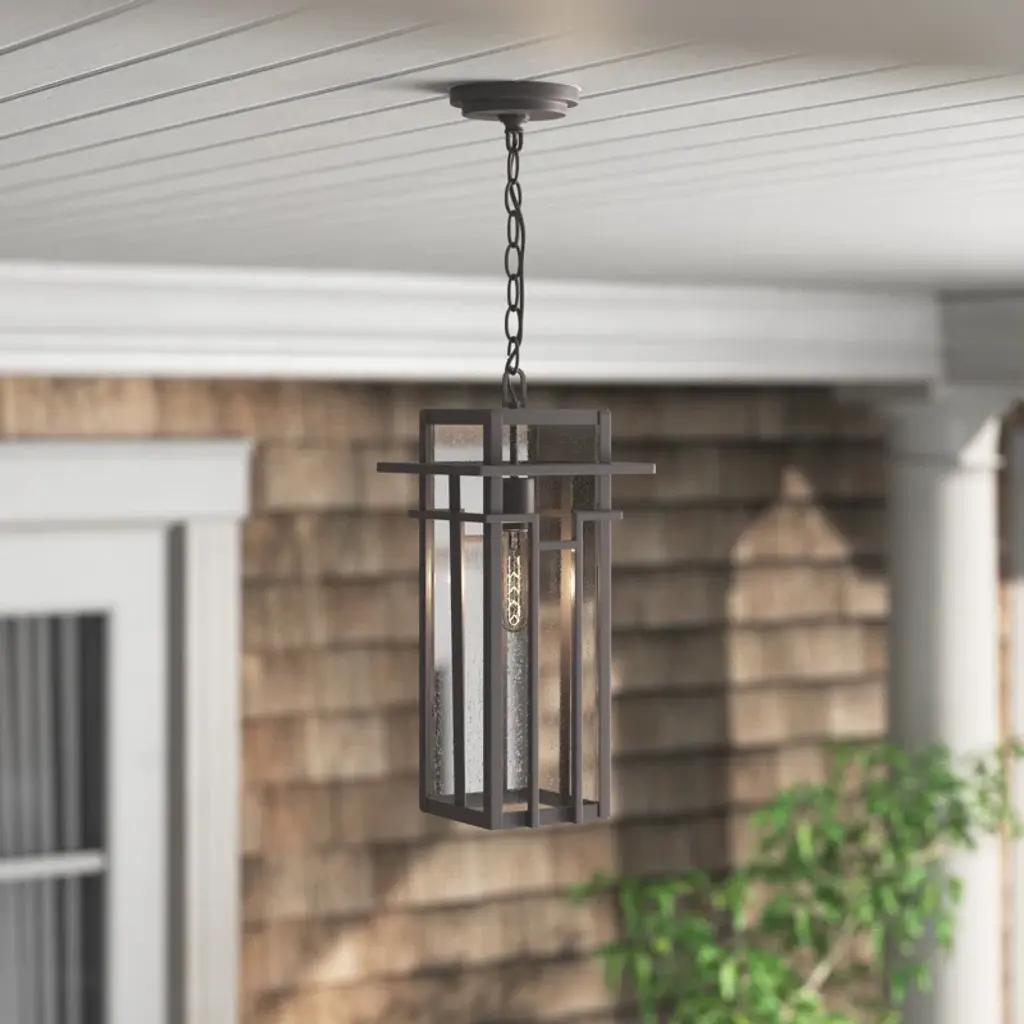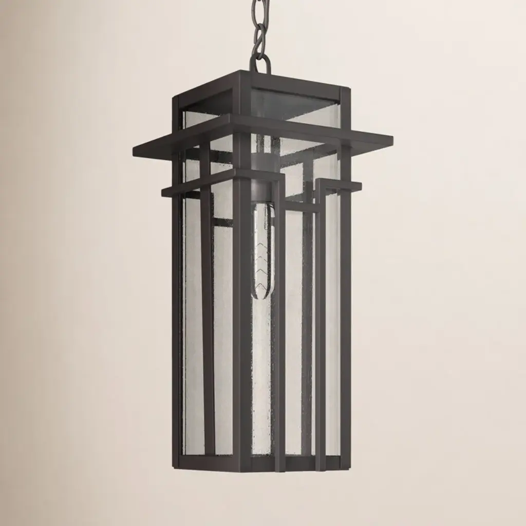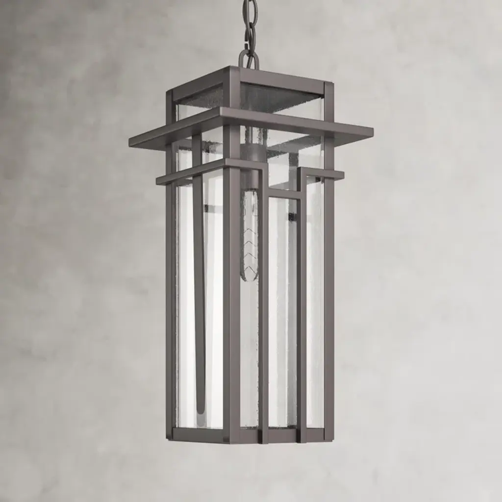 Geometric details in Boxwood’s design enhance Craftsman-inspired architecture. The one-light hanging lantern features clear seeded glass and finished in Architectural Bronze which completes the authentic style.