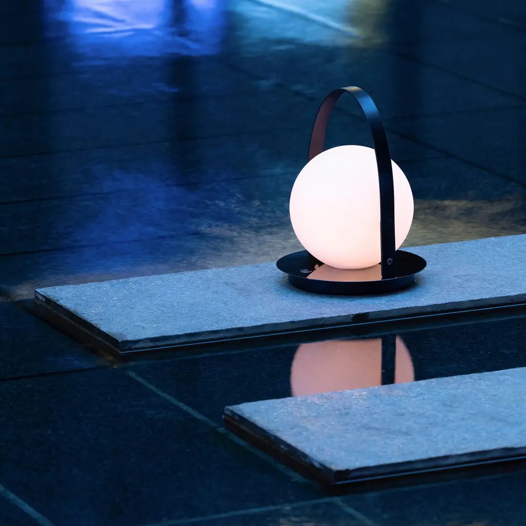 Whether it’s the life of a party or setting a more intimate scene, Bola Lantern is easily one of the most refined portable lamps around. Elegantly appointed in a choice of rich metals with a leather handle, Pablo Pardo’s glowing opal-glass globe echoes his signature Bola series. The rechargeable lantern provides 4 levels of warm ambient light with enough power to last late into the night and beyond—from 10 to 200+ hours. USB charging cable included.