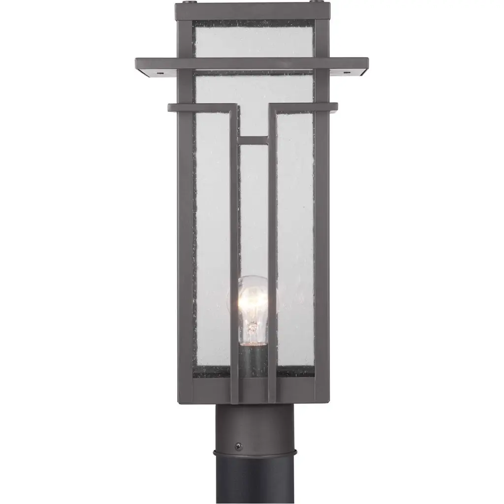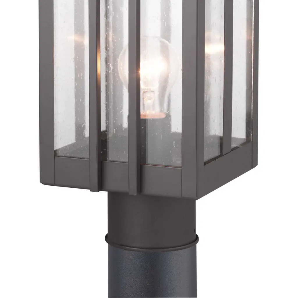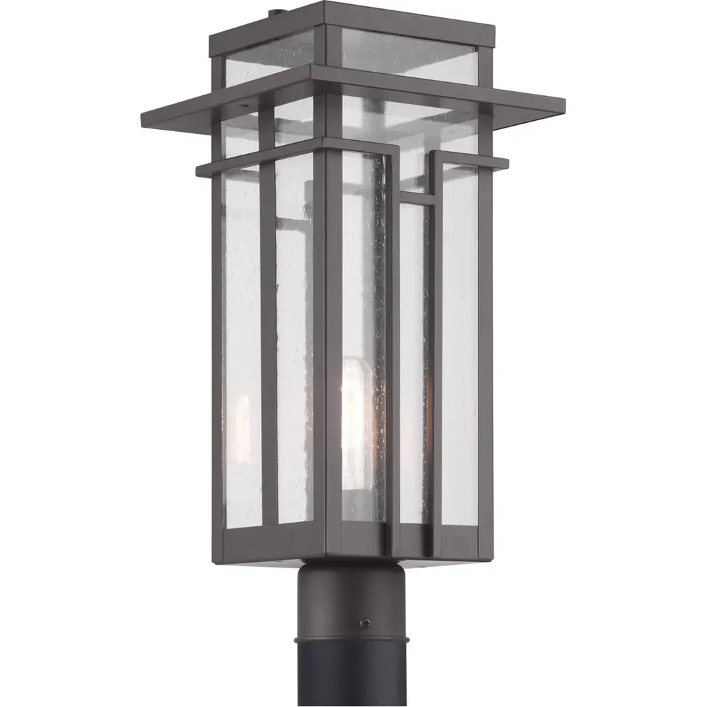 Geometric details in Boxwood’s design enhance Craftsman-inspired architecture. The one-light post lantern features clear seeded glass and finished in Architectural Bronze which completes the authentic style.