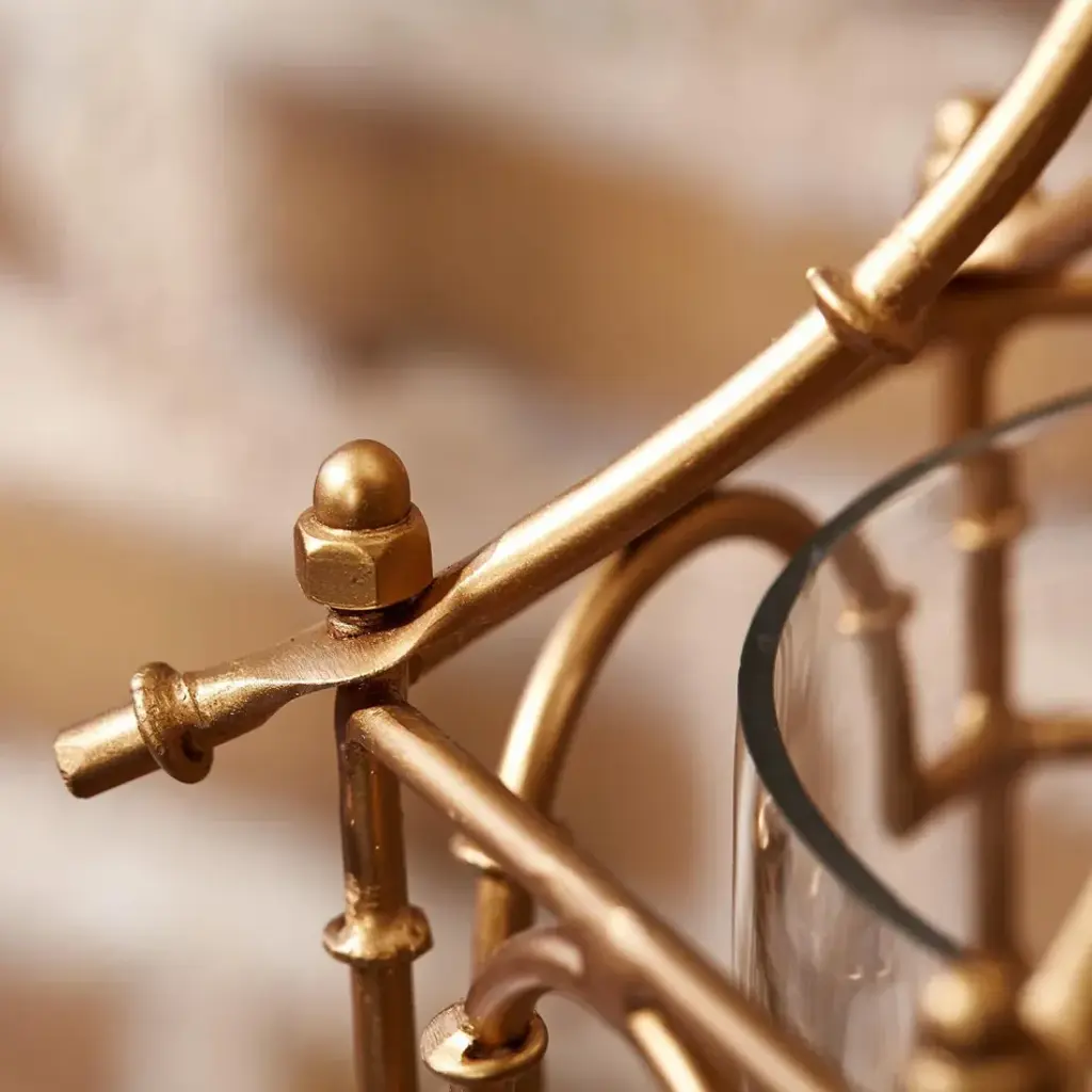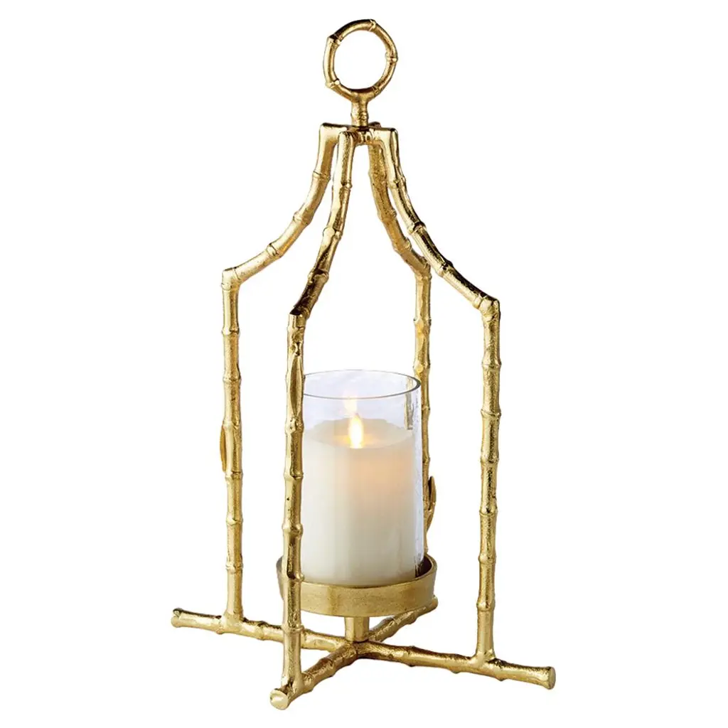 Bring a bit of antique charm to your home with our glass pagoda lantern with shimmering brass bamboo details. They can be hung, placed on a table or a romantic setting for a candlelight dinner. Each lantern includes a glass tube and the top can be removed to place/remove the candle or to simply use as a vase.