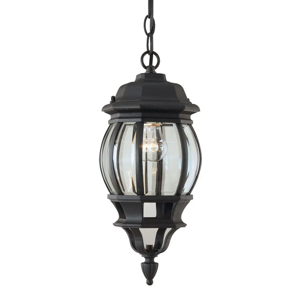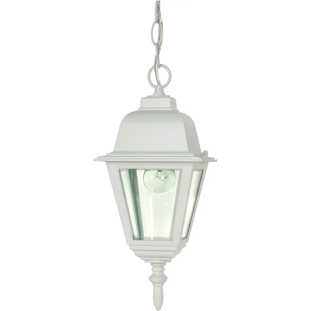 The Builder's Choice collection 1-light hanging lantern is made of cast aluminum. This material is a good choice for exterior lighting since it does not rust and resists corrosion. This is one of our most affordably priced fixtures. Complementing its clean design, this lantern features clear beveled glass panes.