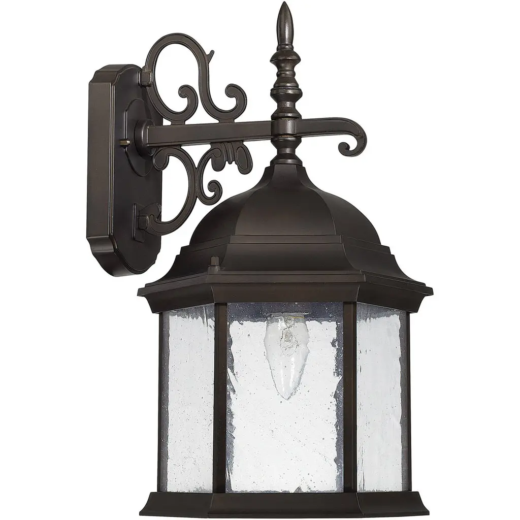 The Cadence three-light wall lantern showcases classic styling with clear water glass panels and traditional lighted clusters. Mediterranean-style frame is finished in Oil Rubbed Bronze. This Design Series collection has four lantern sizes, hanging lantern and post lantern.