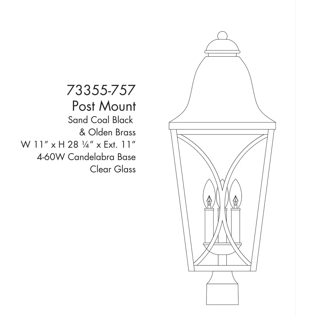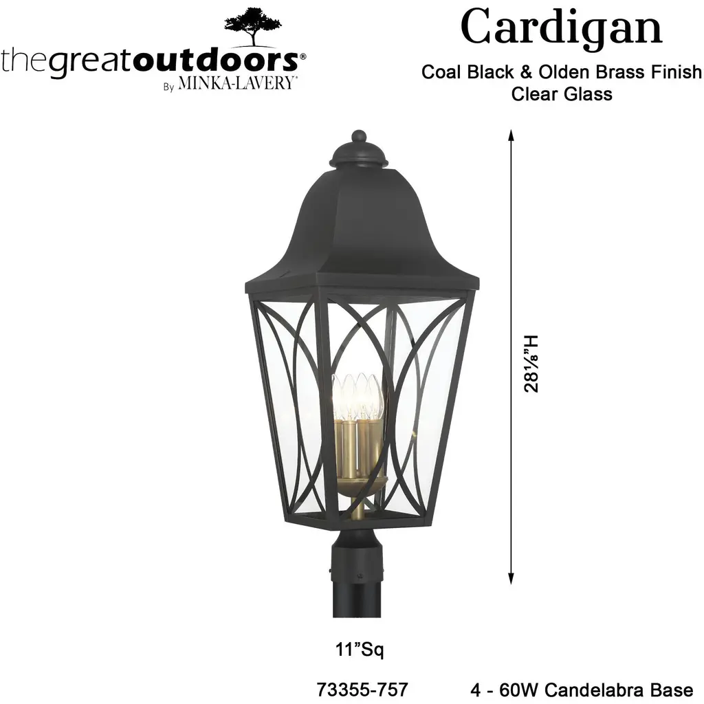 This 4 light Outdoor Post Lantern from the Cardigan collection by Minka-Lavery will enhance your home with a perfect mix of form and function. The features include a Sand Coal and Olden Brass finish applied by experts. This item qualifies for free shipping!