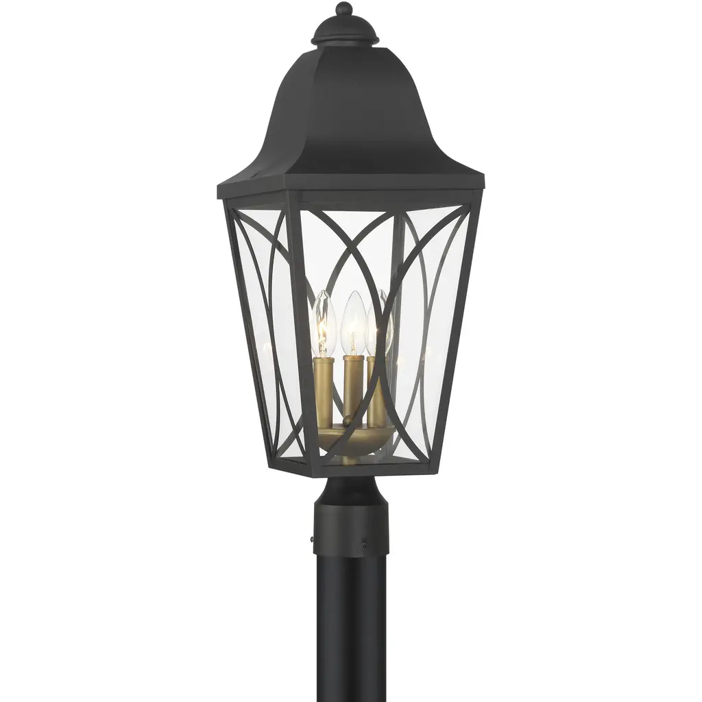 Cardigan 4 Light 28.25 Inch Sand Coal And Olden Brass Outdoor Post Lantern, Great Outdoors