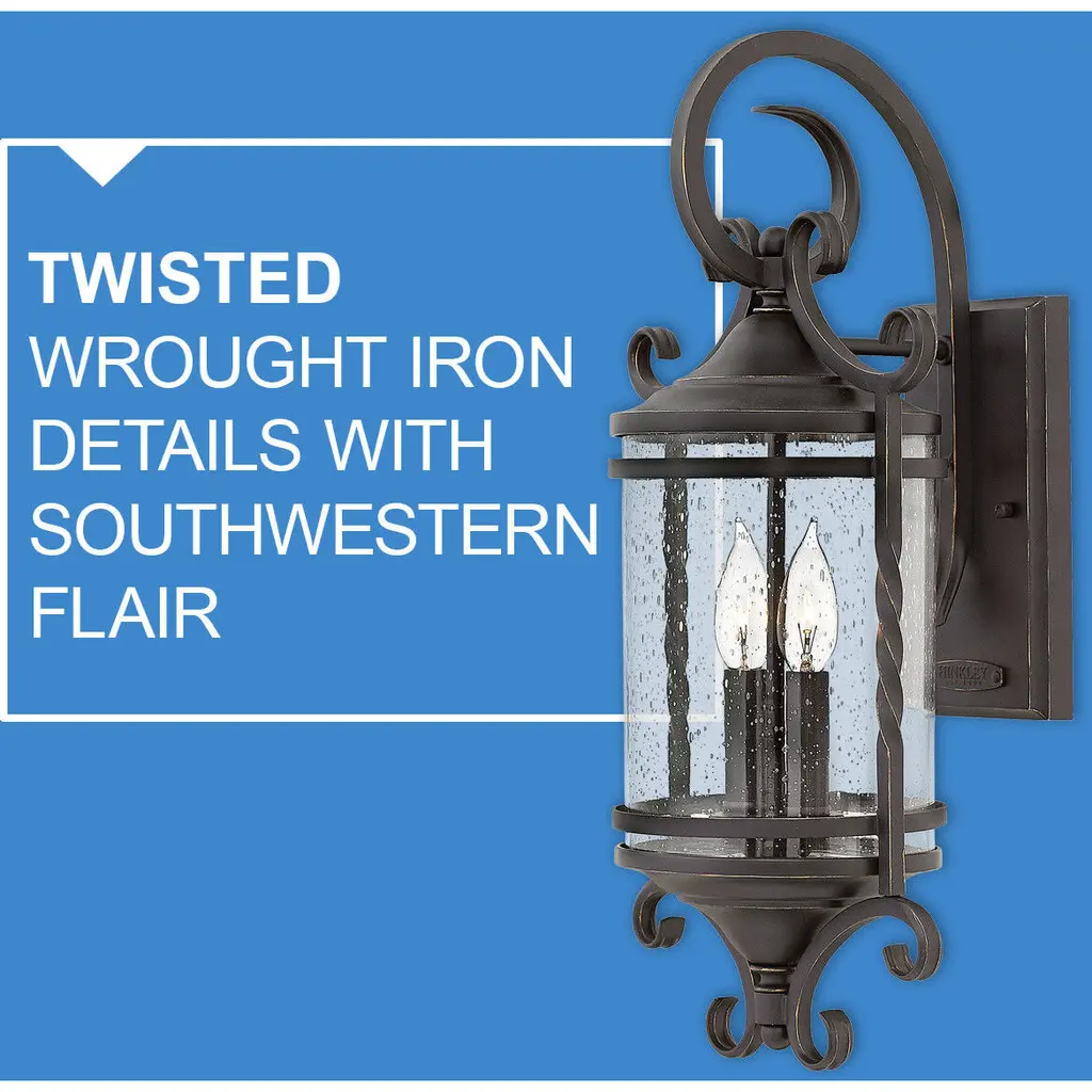 Casa features solid aluminum construction with twisted wrought iron details and hand-forged scrollwork in an Olde Black finish to complete its rustic-chic appeal with a Southwestern flair.