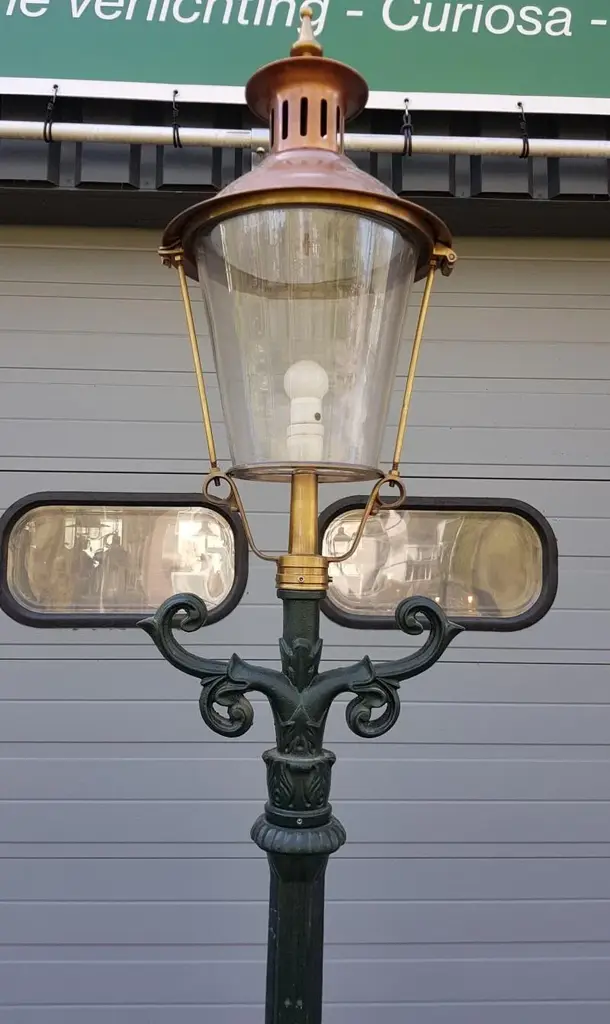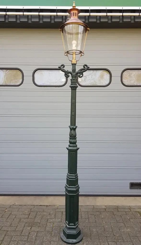 Cast Iron Lamp Post M2 with Round Copper Lantern, in Flawless conditions. Designed from 2000 Up to 250V (Europe/UK Standard).The wiring of this item may be original and might need replacement, if not specified otherwise.