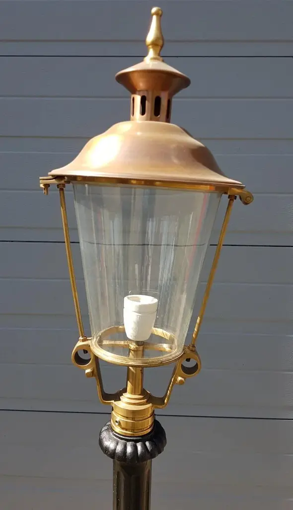 Cast Iron Lamp Post with Copper Round Lantern, in Flawless conditions. Designed from 2000 Up to 250V (Europe/UK Standard).The wiring of this item may be original and might need replacement, if not specified otherwise.