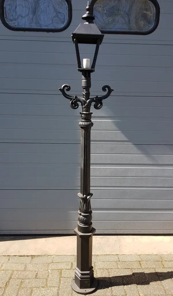 Cast Iron Lamp Post with Square Cast Iron Lantern, in Flawless conditions. Designed from 2000 Up to 250V (Europe/UK Standard).The wiring of this item may be original and might need replacement, if not specified otherwise.