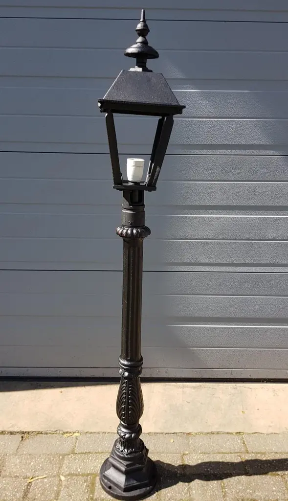 Cast Iron Lamp Post with Square Cast Iron Lantern, in Flawless conditions. Designed from 2000 Up to 250V (Europe/UK Standard).The wiring of this item may be original and might need replacement, if not specified otherwise.