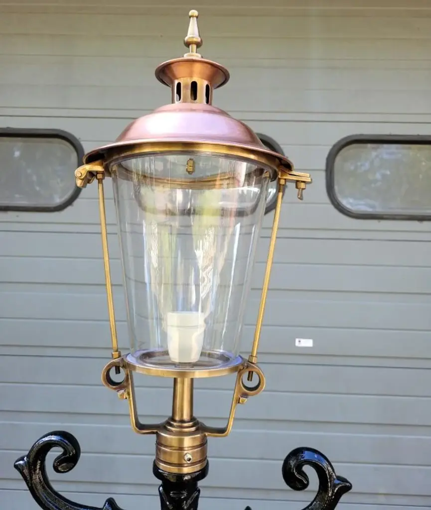 Cast Iron Lamp with Round Cast Iron Lantern, in Flawless conditions. Designed from 2000 Up to 250V (Europe/UK Standard).The wiring of this item may be original and might need replacement, if not specified otherwise.