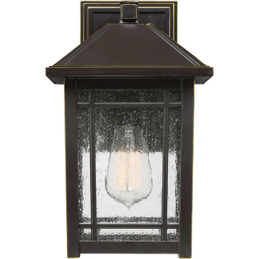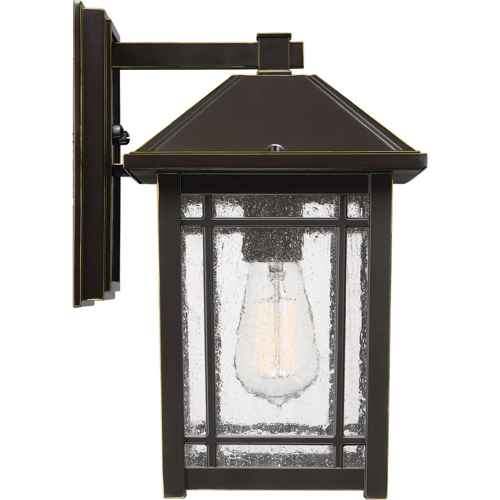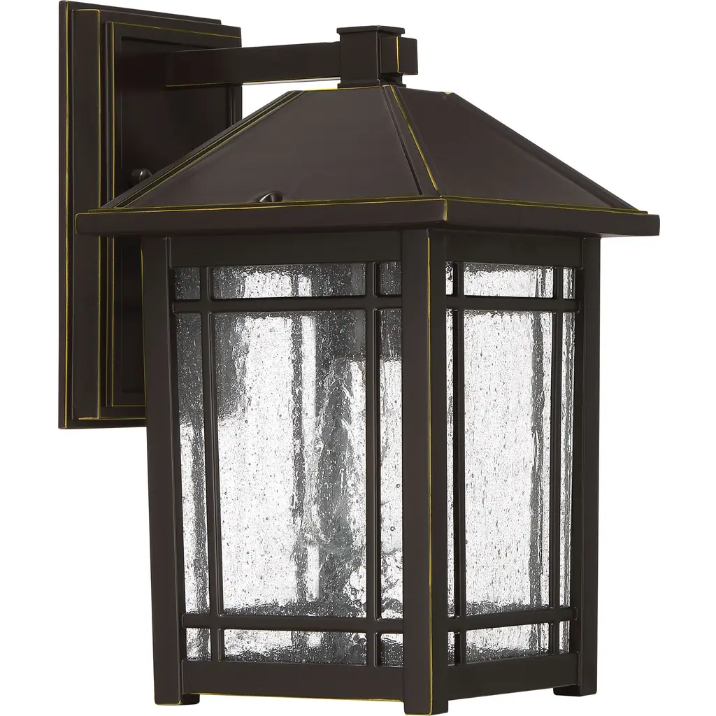 From a rustic lodge to a craftsman-style cottage, the Cedar Point collection is versatile styling at its finest. The seedy glass panels subtly obscure the light source while providing visual interest. The frame is accented with slender trim and lattice detailing that beautifully frames the lanternÂs soft glow. A rich Palladian bronze finish completes the look.