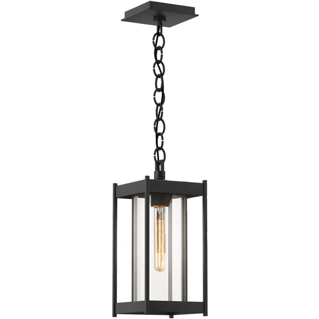 The Cela Outdoor Lantern is a contemporary pendant design that will add a touch of elegance to any space. The strong rectilinear lines of the aluminum frame hold a well-proportioned cylinder of blown glass. This chain-hung ceiling pendant is perfect for outdoor spaces and is offered in any of six Coastal Outdoor Finishes.