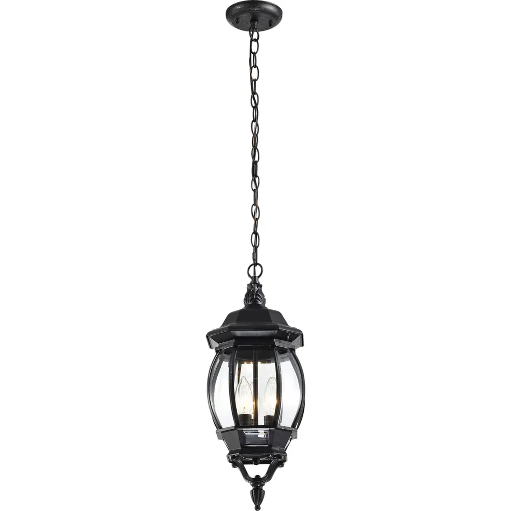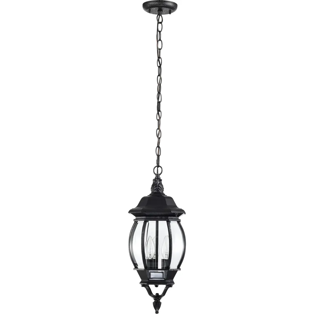 Central Park 3 Light 7 Inch Textured Black Outdoor Hanging Lantern