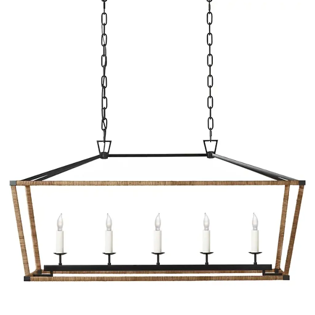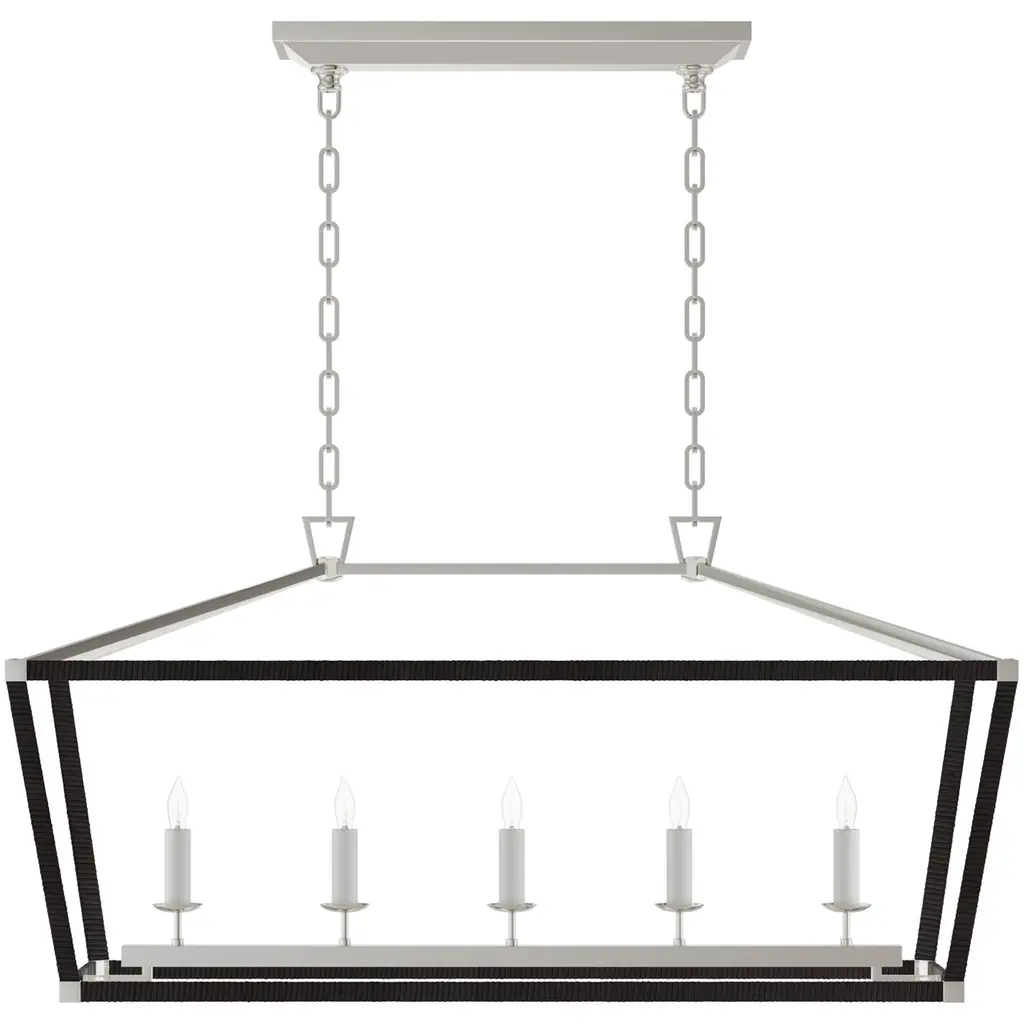 Chapman & Myers Darlana5 Led 54 Inch Polished Nickel And Black Rattan Linear Lantern Ceiling Light, Large