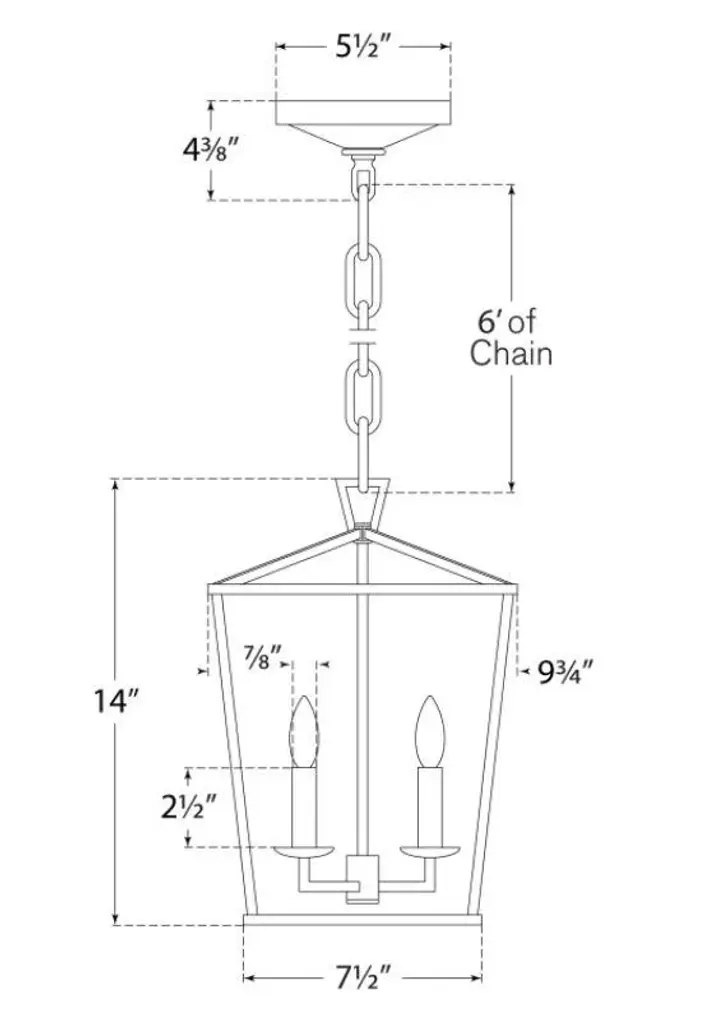 Darlana Mini Lantern in Polished Nickel Designer: Chapman & Myers Canopy: 5.5" Round Mounting: Chain Shade Detail: No Option Socket: 3 - E12 Candelabra Wattage: 3 - 60 C11 Safety Rating Location: DRY