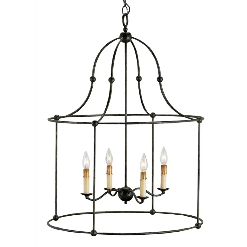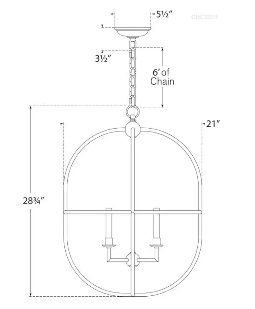 Desmond Open Oval Lantern in Aged Iron Designer: Chapman & Myers Canopy: 5.5" Round Mounting: Chain Shade Detail: No Option Socket: 4 - E12 Candelabra Wattage: 4 - 40 C11 Safety Rating Location: DAMP