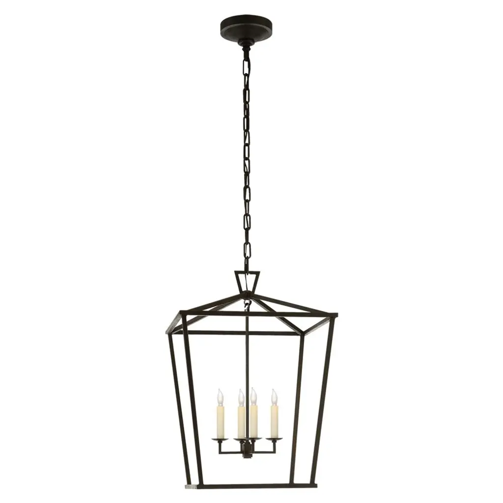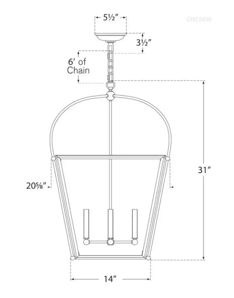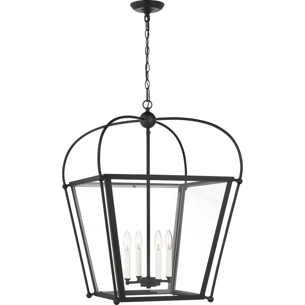 Riverside Medium Square Lantern in Bronze with Clear Glass Designer: Chapman & Myers Canopy: 5.5" Round Mounting: Chain Shade Detail: Clear Glass Socket: 4 - E12 Candelabra Wattage: 4 - 60 C11 Safety Rating Location: DAMP