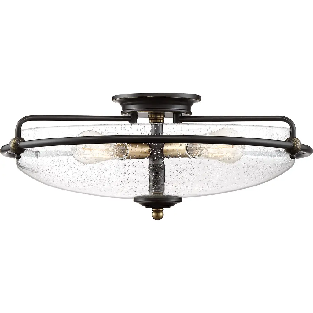Lorford Large Semi Flush Lantern in Aged Iron with Clear Glass