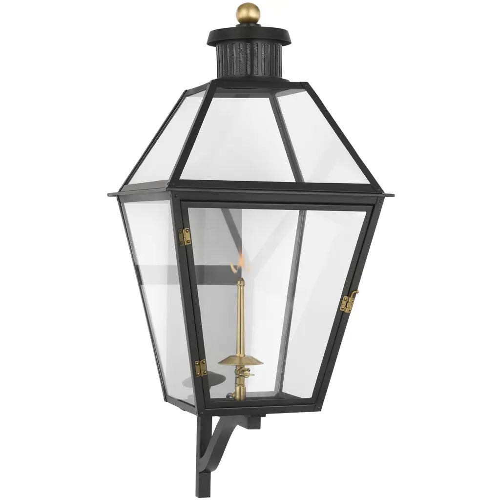 Stratford Small Bracketed Gas Wall Lantern in Matte Black with Clear Glass