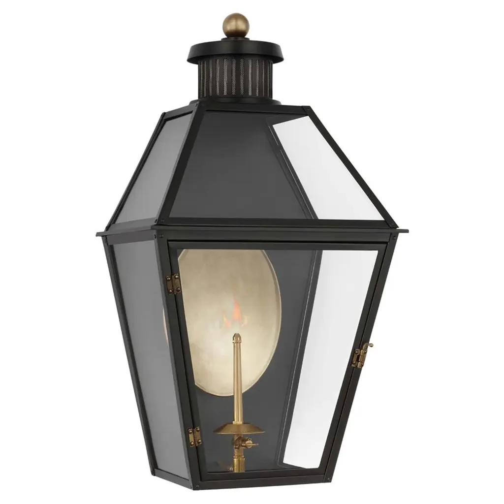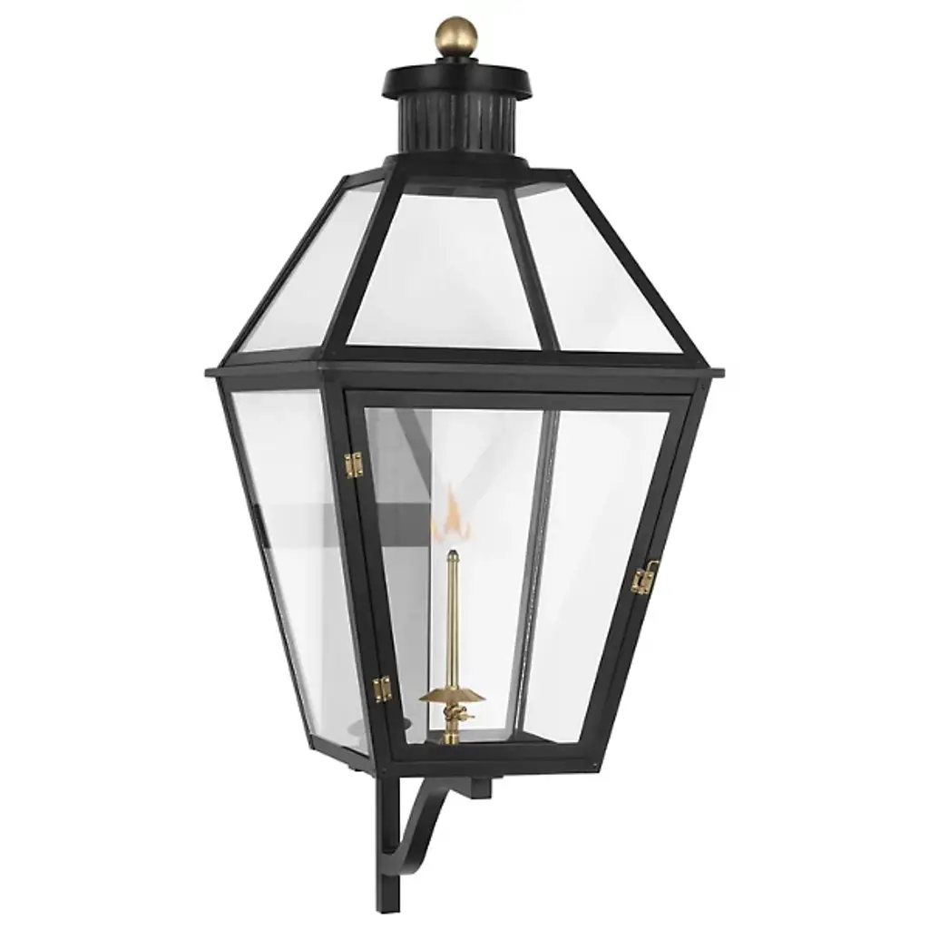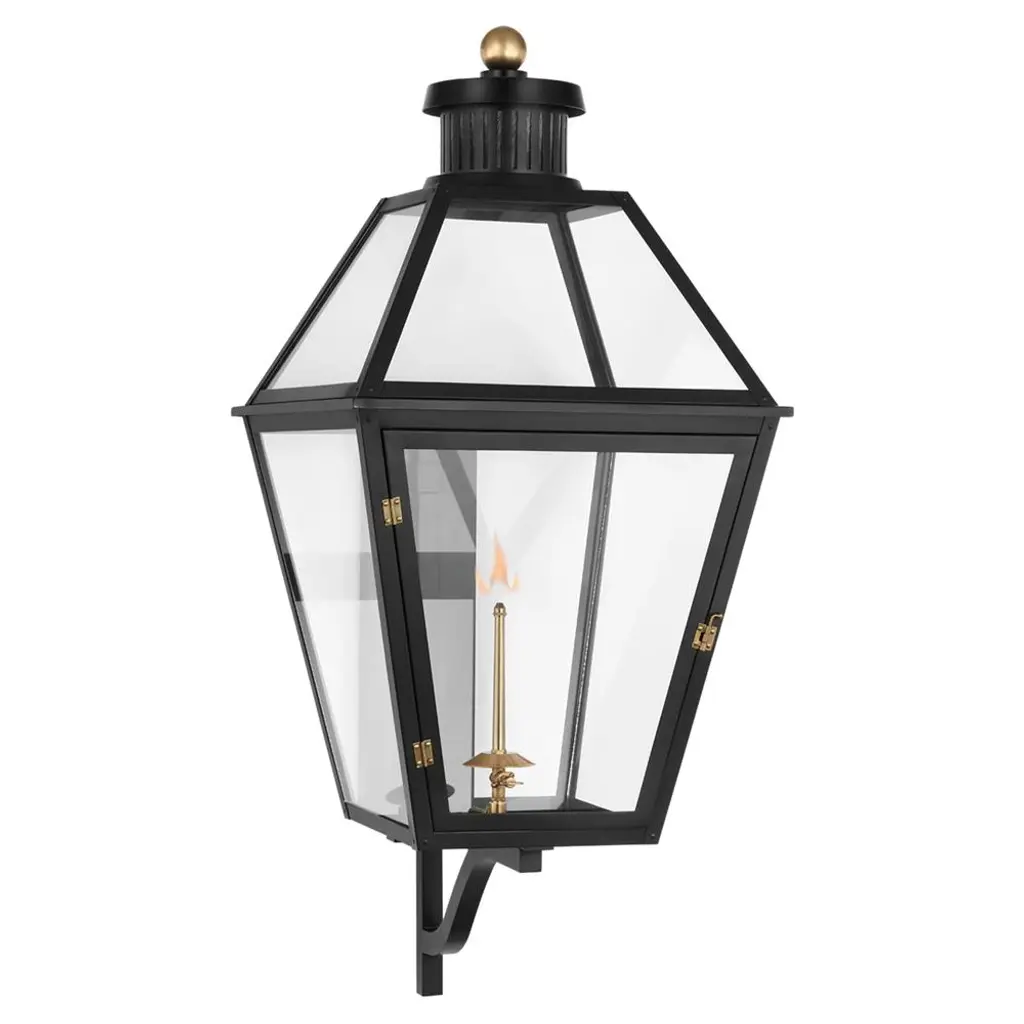 Stratford Medium 3/4 Gas Wall Lantern in Matte Black with Clear Glass