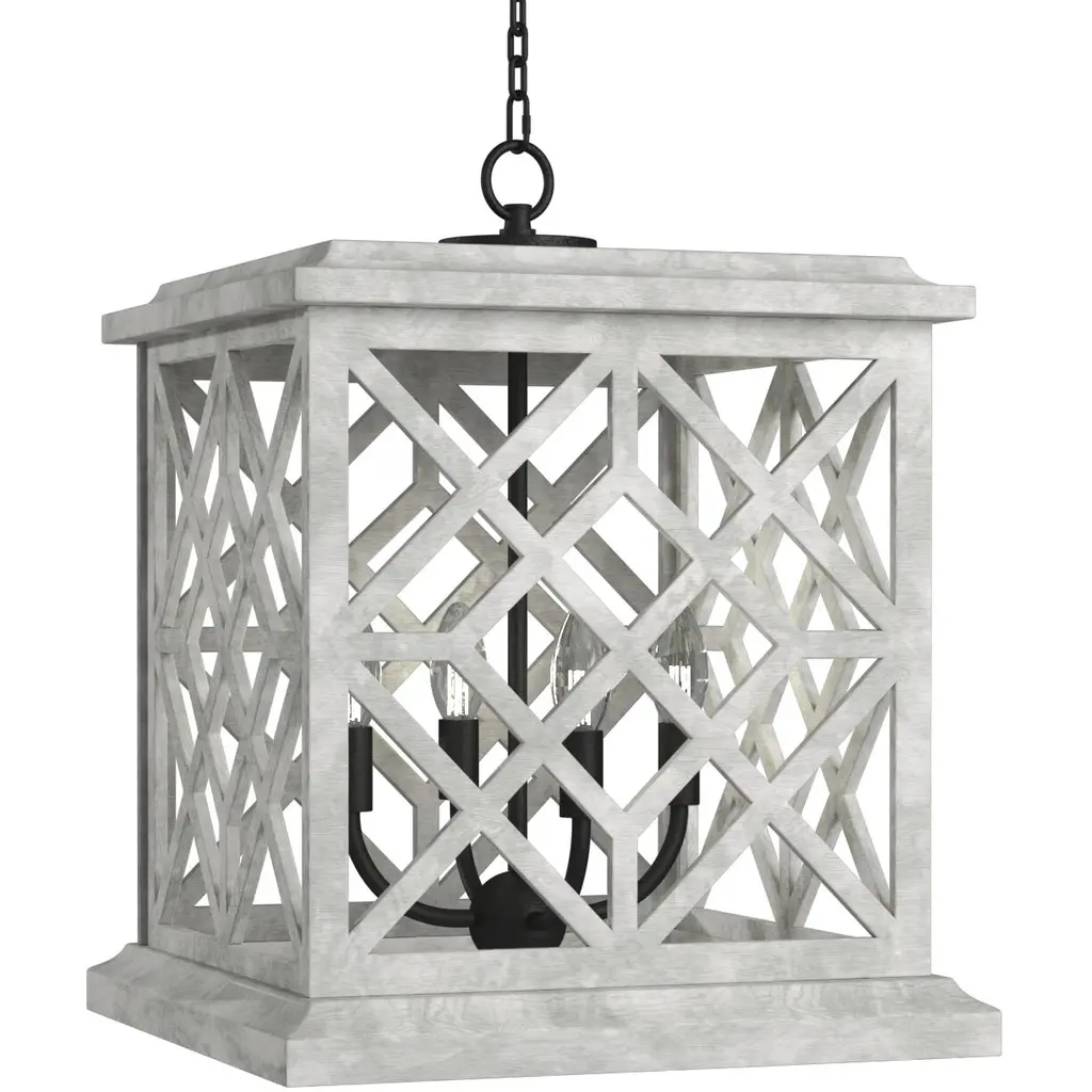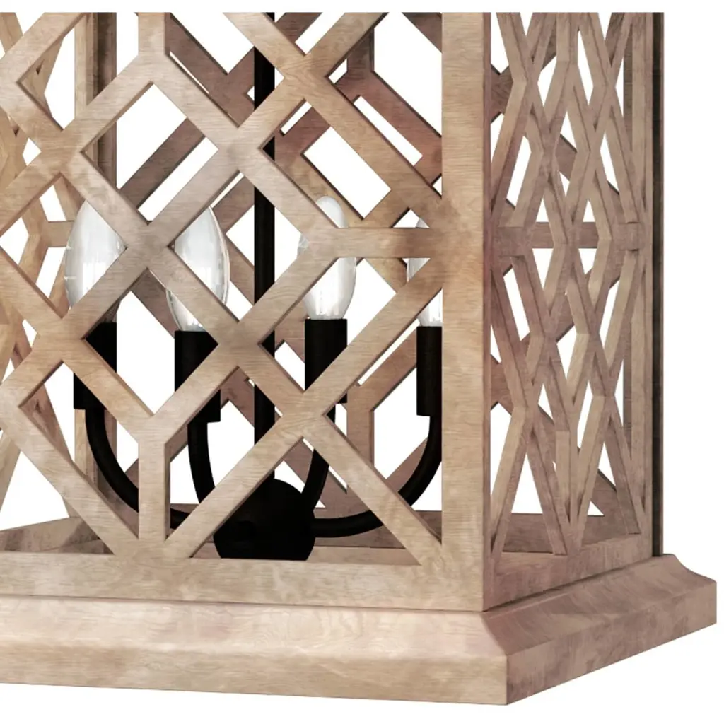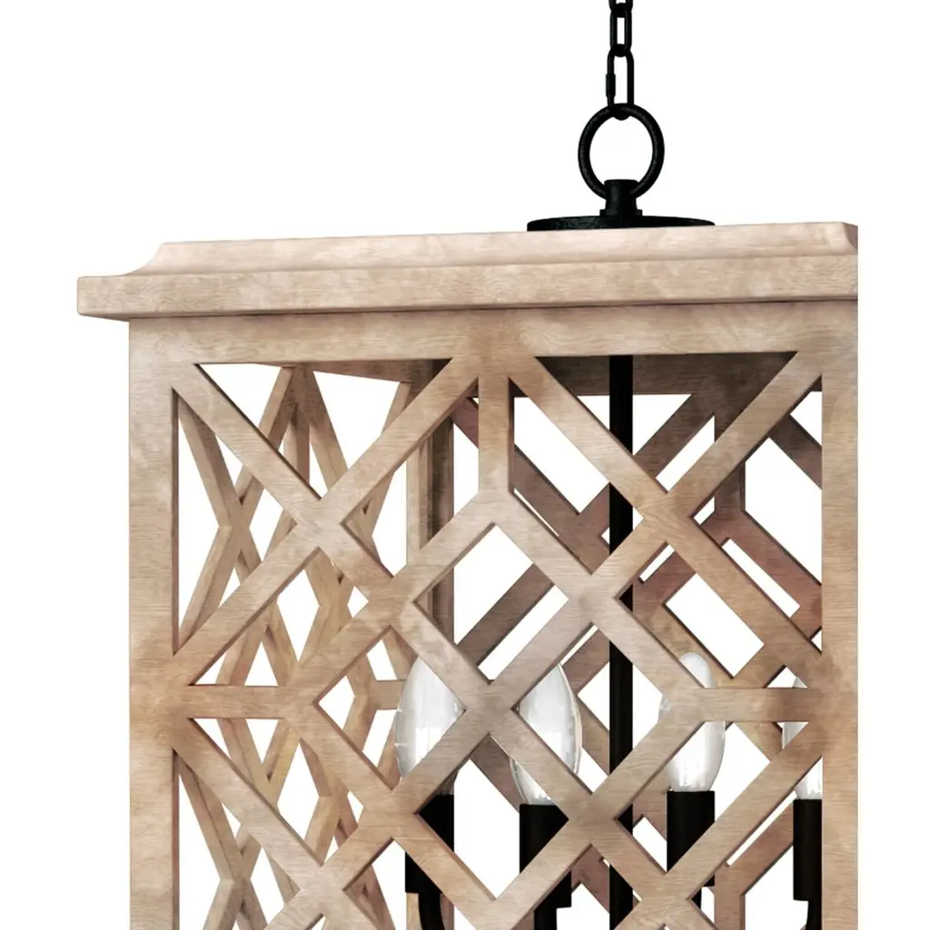 A beautiful lattice pattern emerges from solid wood to create the Chatham Lanternâs signature coastal appeal. Blackened Iron components add a stately touch and the piece takes on a different feel when warmly lit, creating romantic light play within and on surrounding surfaces. Place this coastal beauty in an entryway, living room or above a kitchen island or table.